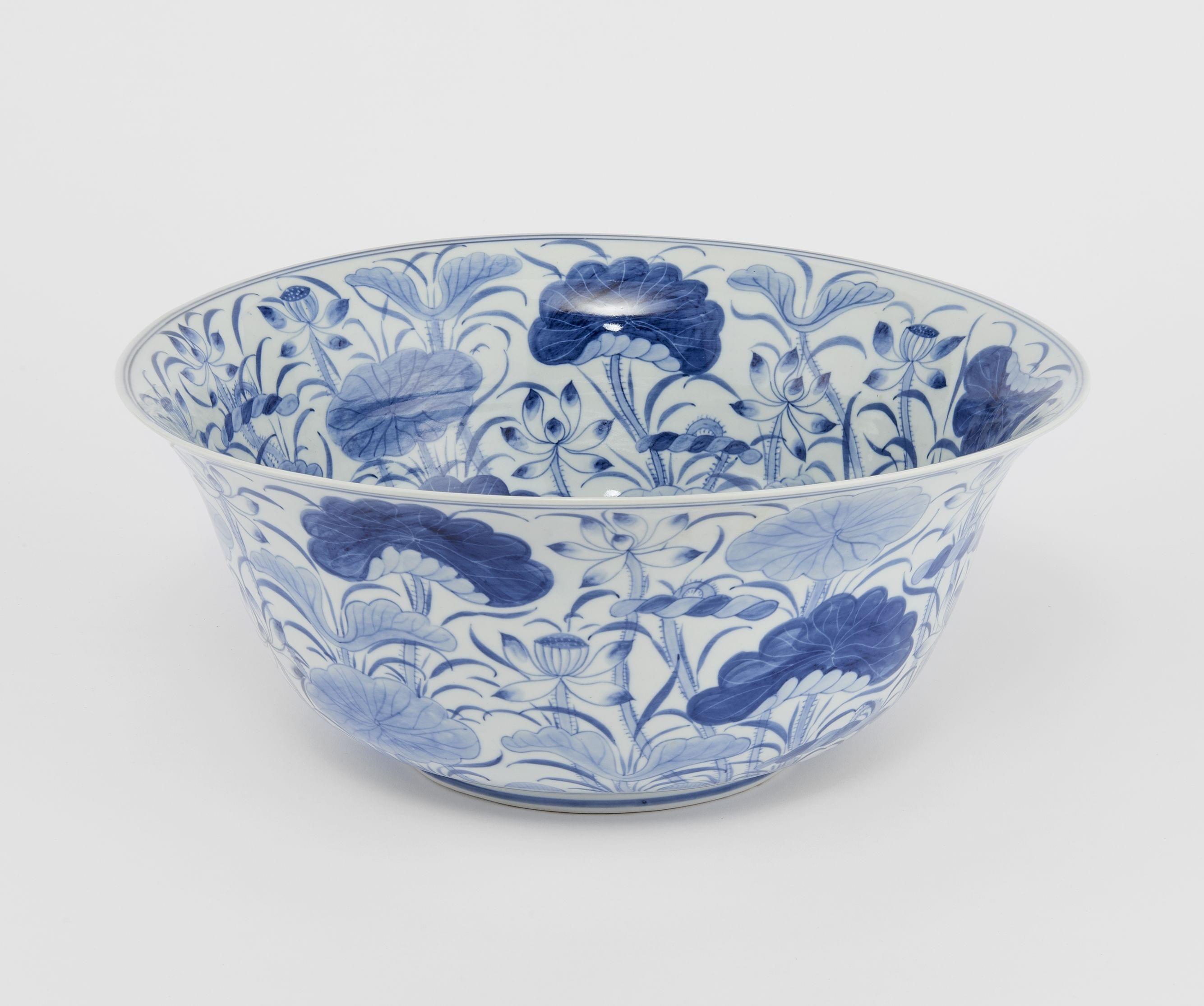 Porcelaine à décor émaillé bleu blanc, D 37 cm. Provenance: collection Pernet-Villaverde