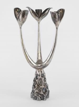 184. Candélabre à trois feux en forme de fleur stylisée