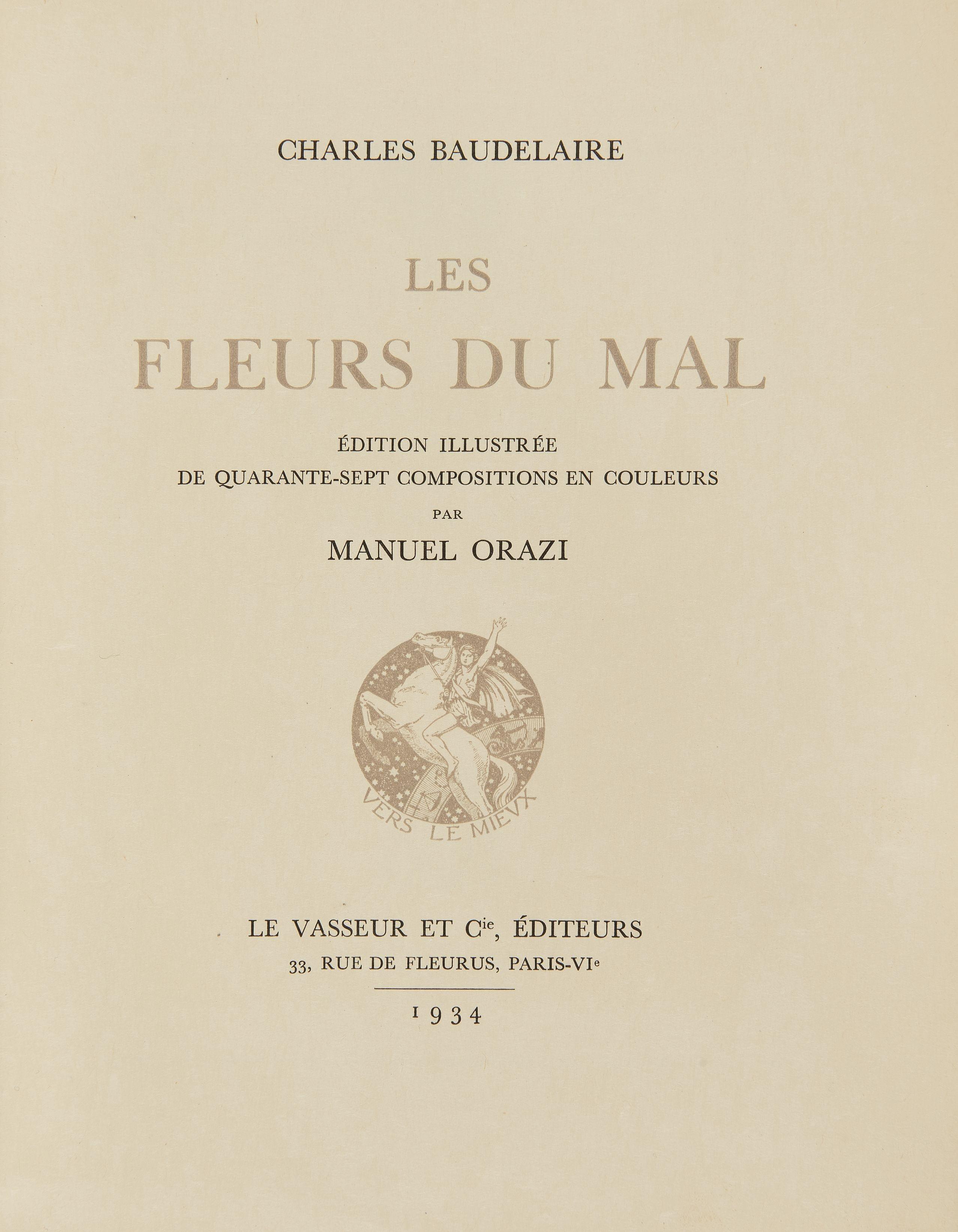 422. BAUDELAIRE Charles): Les Fleurs du Mal. Ill. de Manuel ORAZI. Paris, Le Vasseur, 1934;