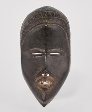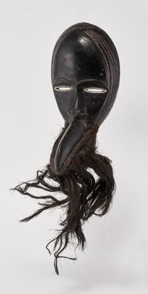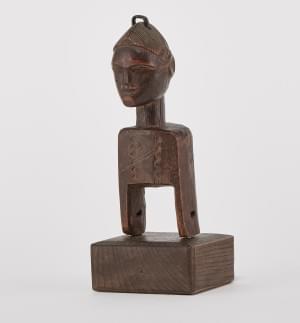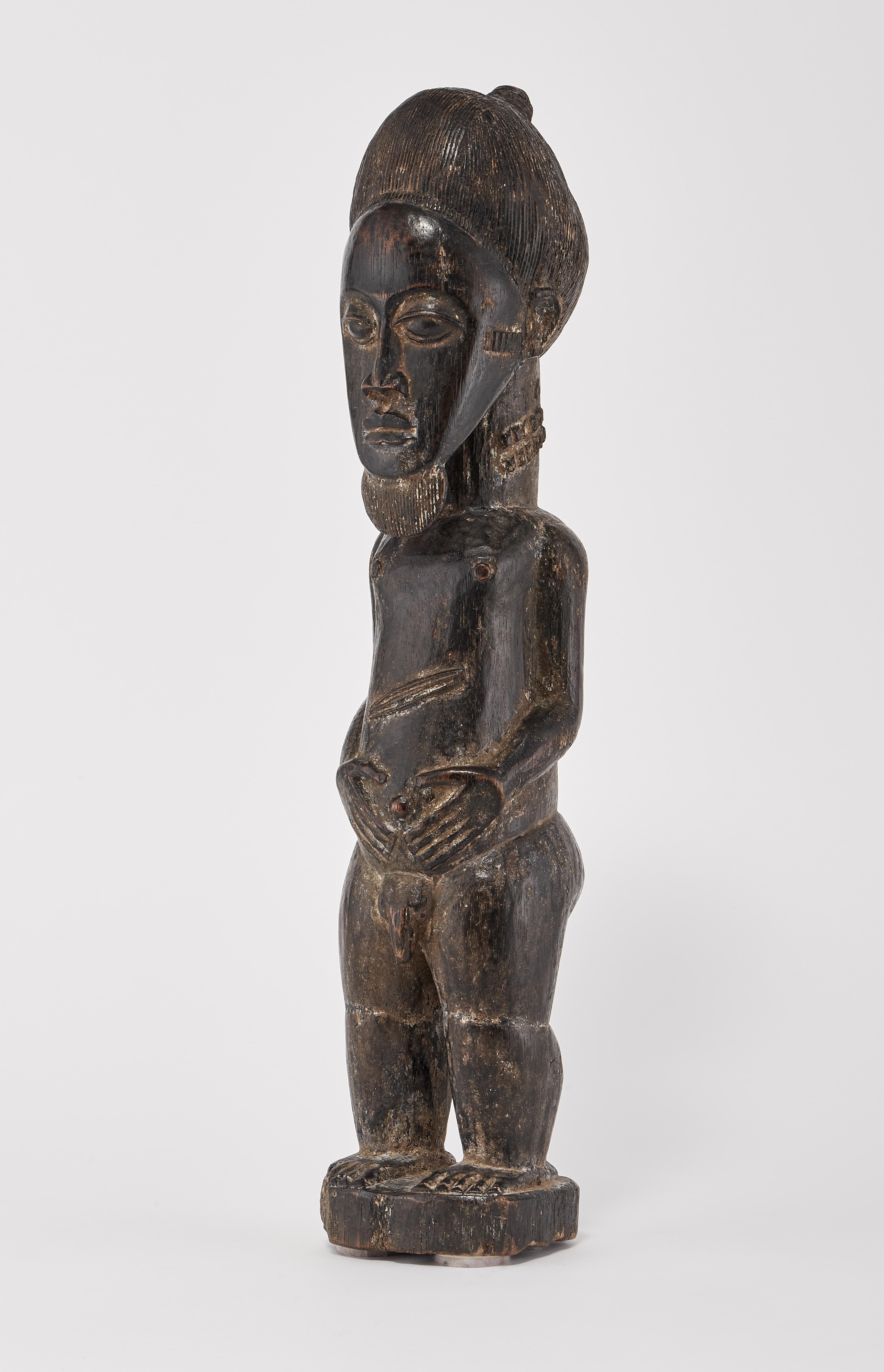 Bois à patine noire brillante et traces de libations, H 53 cm