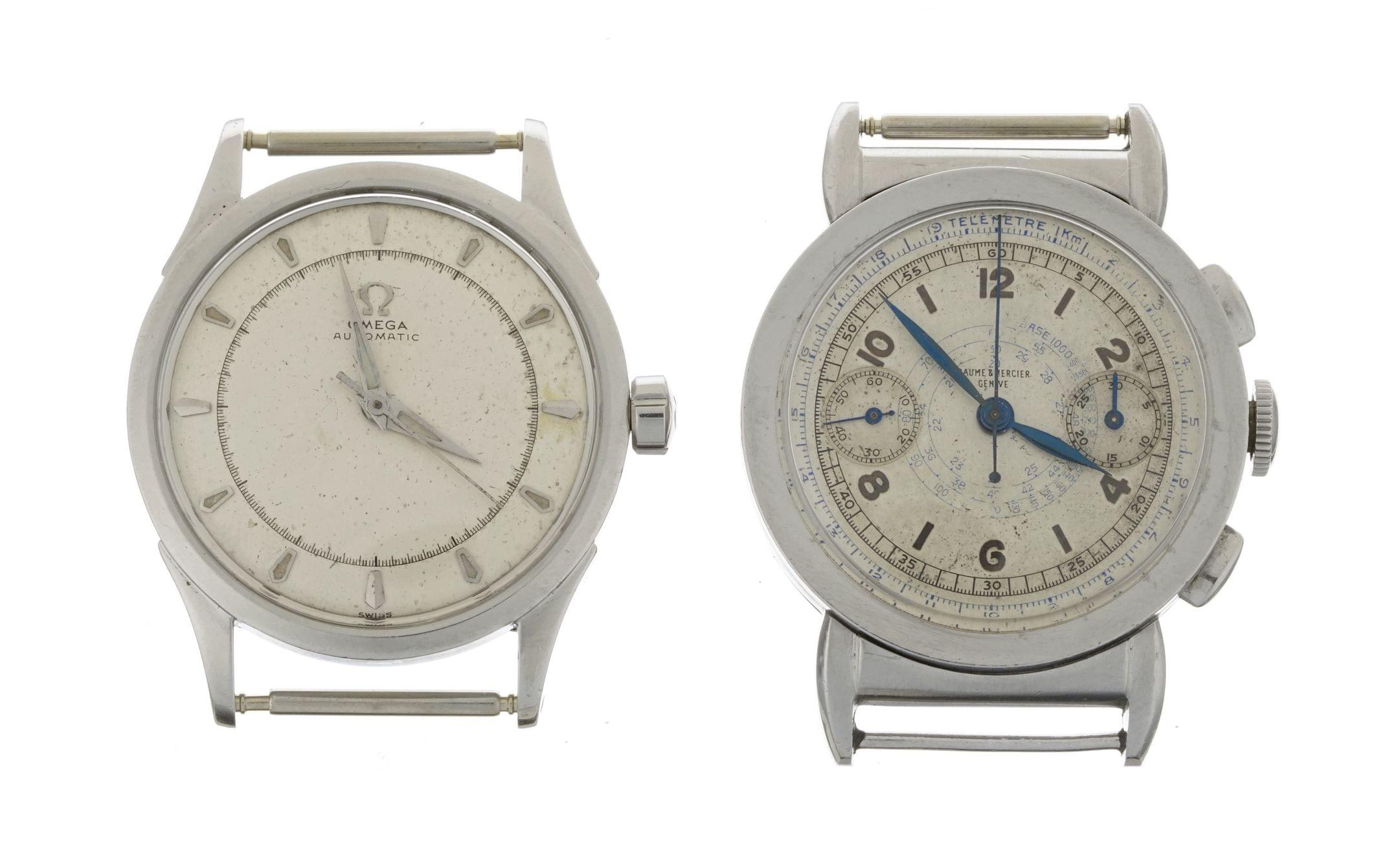 3075. Baume & Mercier et Omega, lot de deux montres, automatique et mécanique, sans bracelet