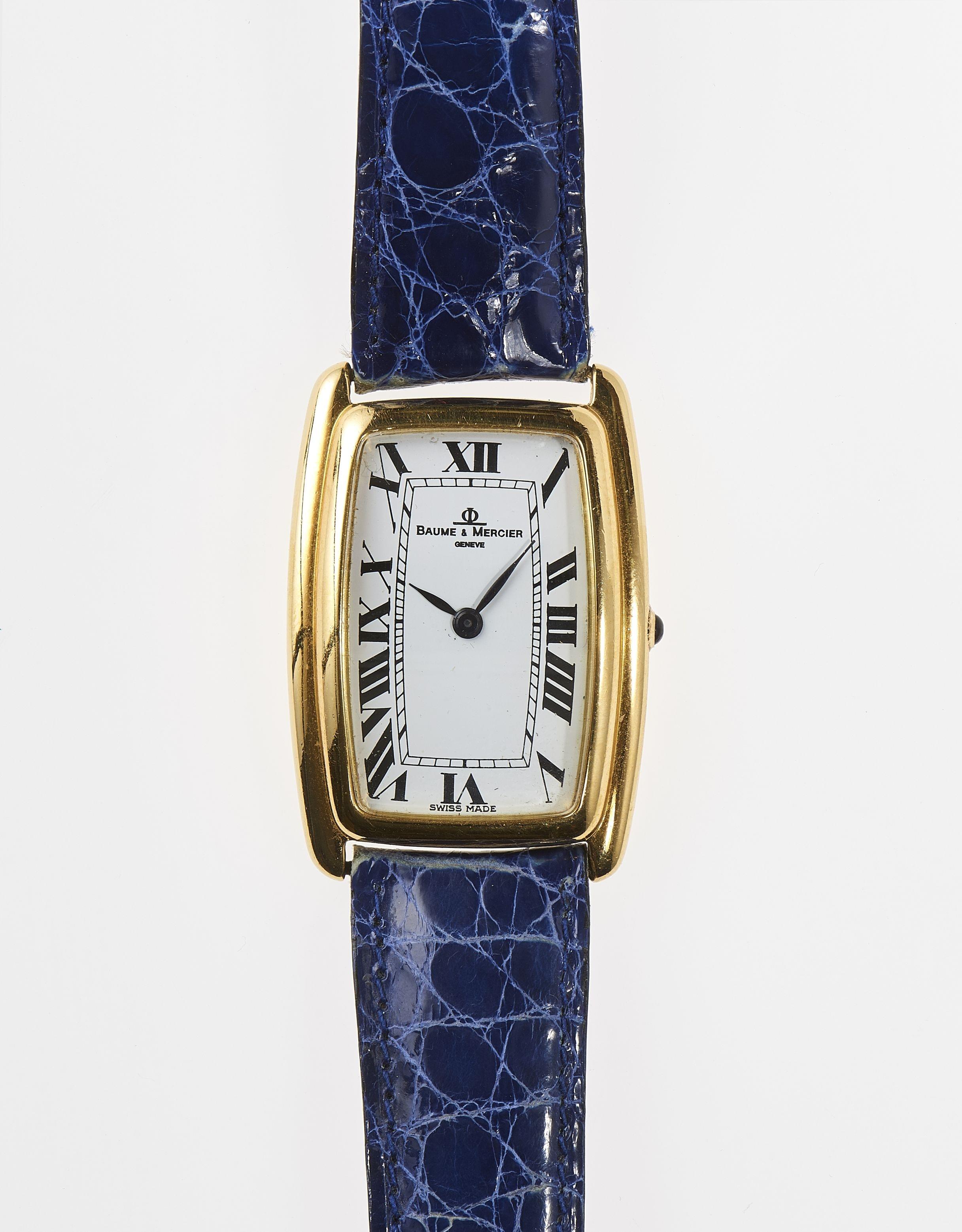 Cadran blanc, aiguilles et chiffres romains noirs, or 750, 26x33 mm, poids brut 36 g. Provenance: collection Pernet-Villaverde