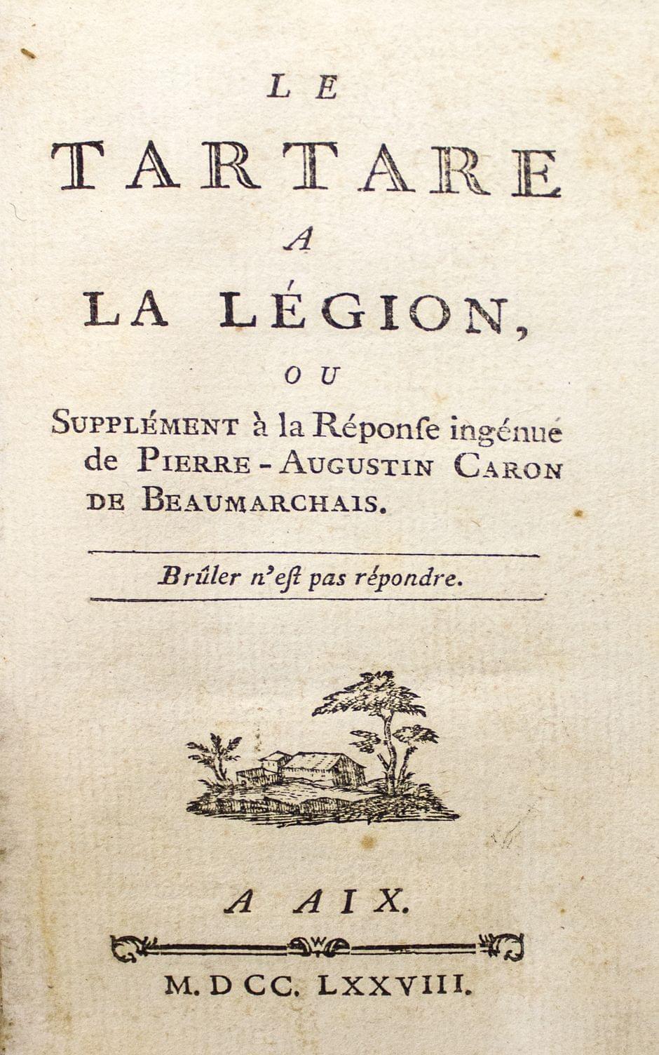 3699. BEAUMARCHAIS (Pierre-Antoine CARON de): Le Tartare à la Légion. Aix (Paris), 1778;