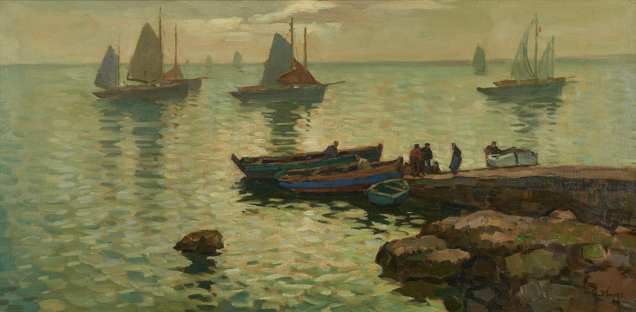 Concarneau, huile sur toile, signée, 40x80 cm. Un tableau quasi identique vendu chez Christie's Amsterdam, le 5 septembre 2007