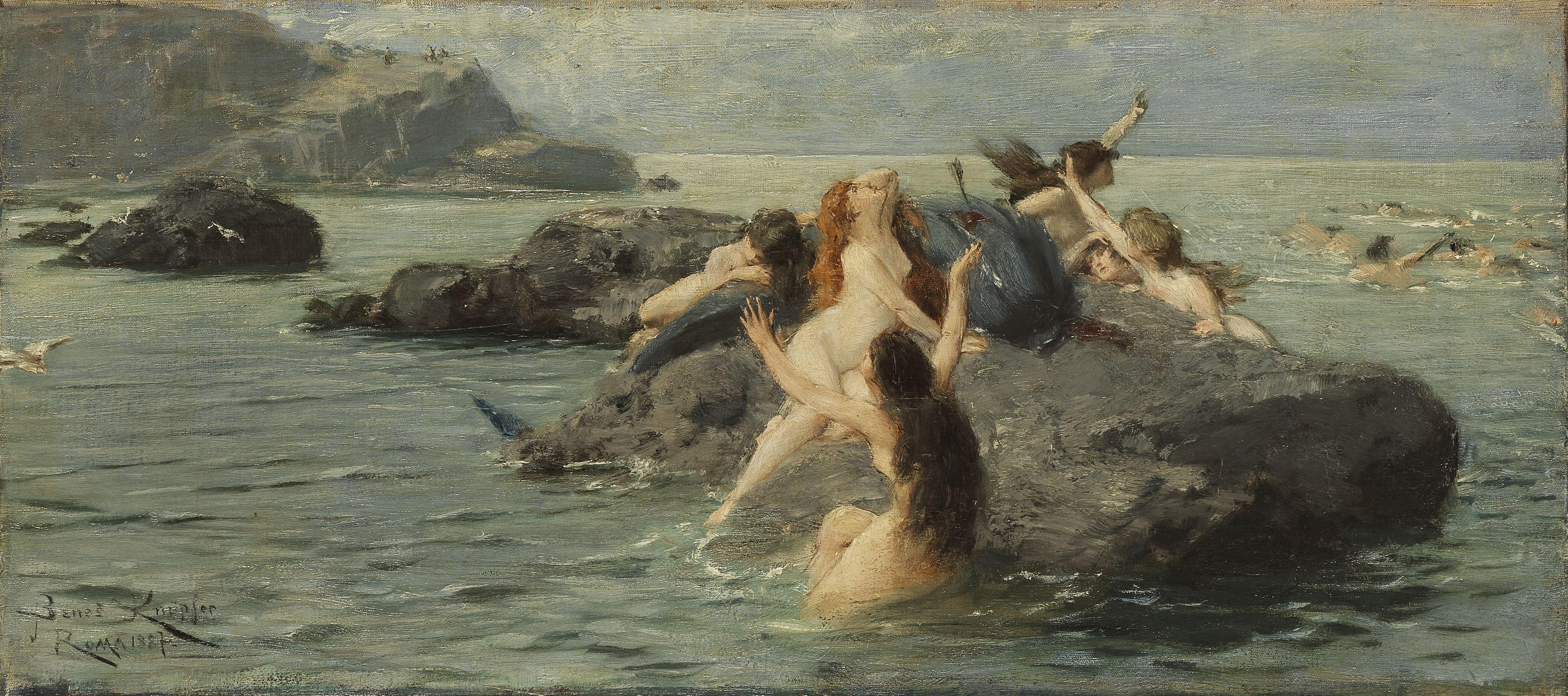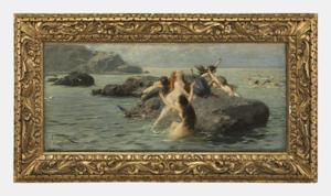 Naïades, huile sur toile, signée et datée Roma 1887, 27x61 cm