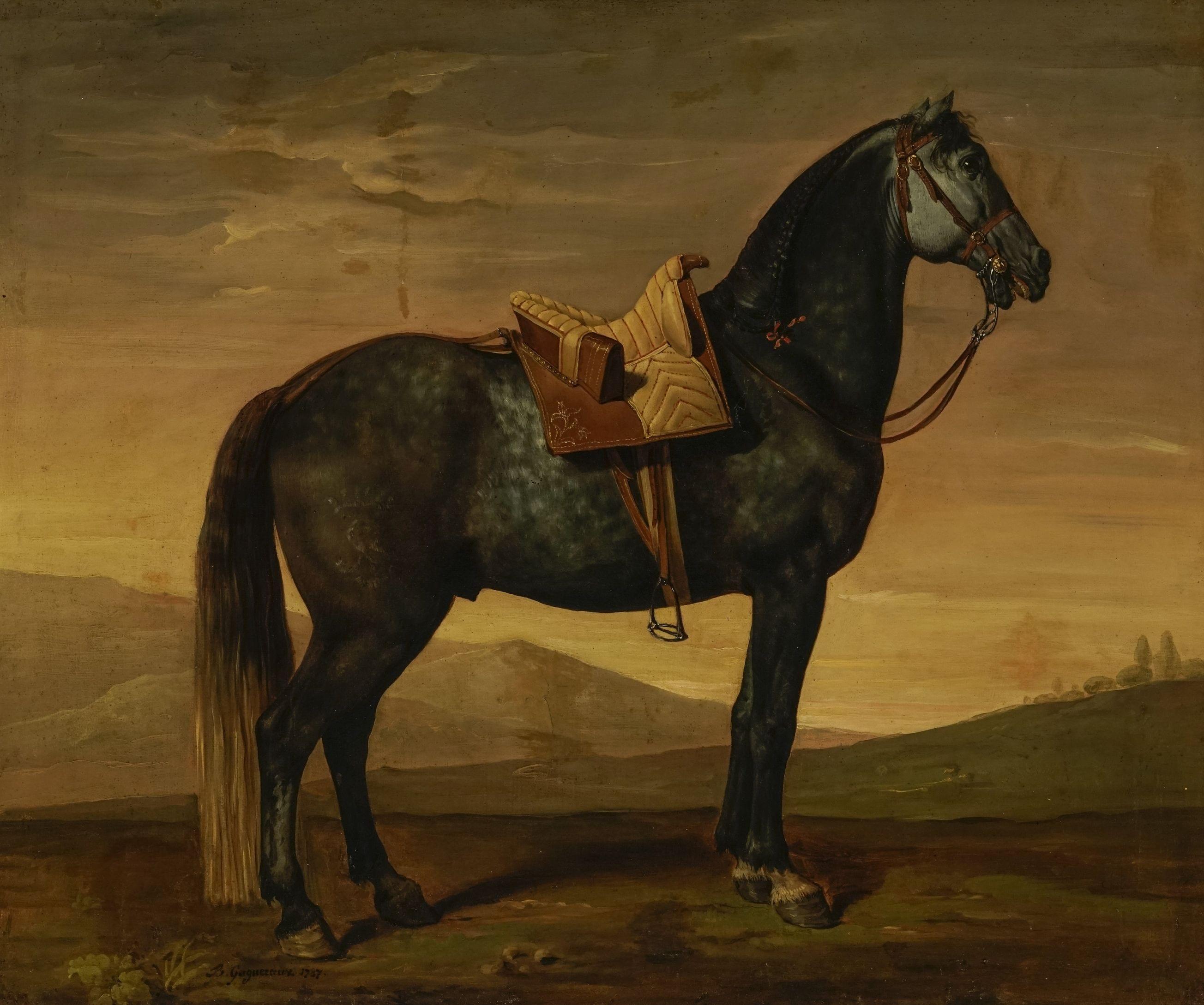 Cheval, huile sur toile, signée et datée 1787, 62x75 cm.