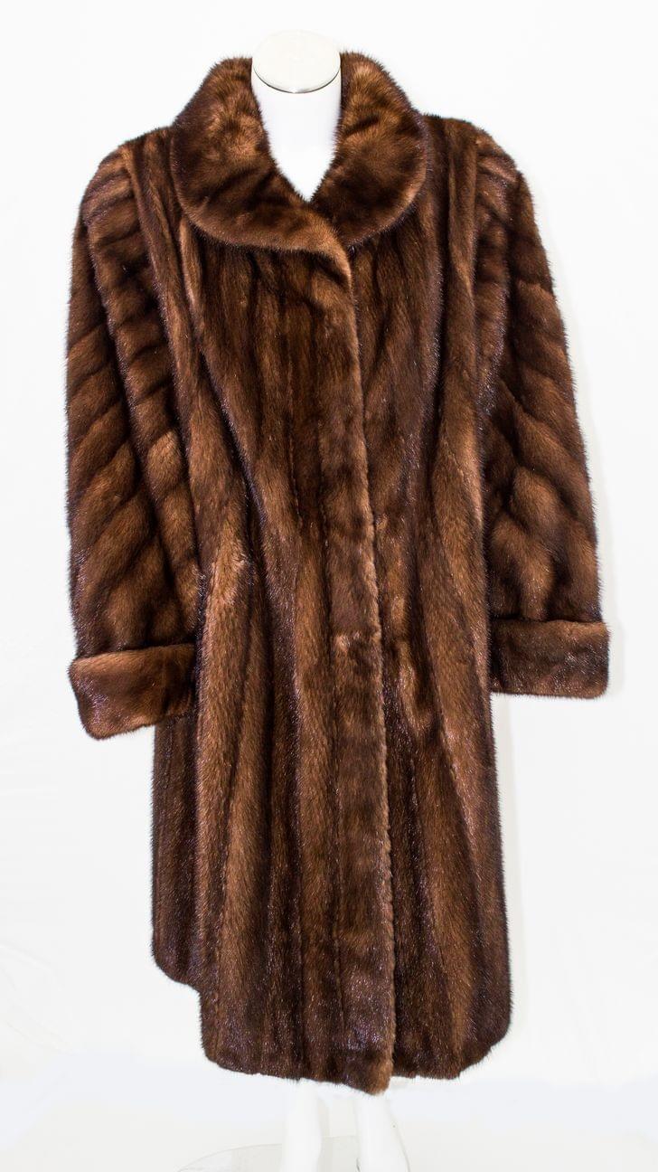 Pelisse noire à ceinture, col et poignet en vison, intérieur cas...