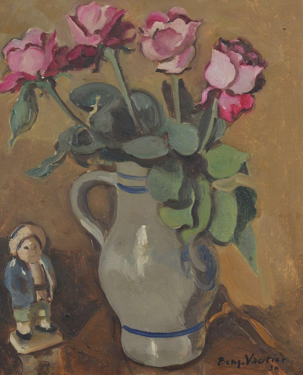 Bouquet de roses, huile sur toile signée et datée 30, 41x33 cm
