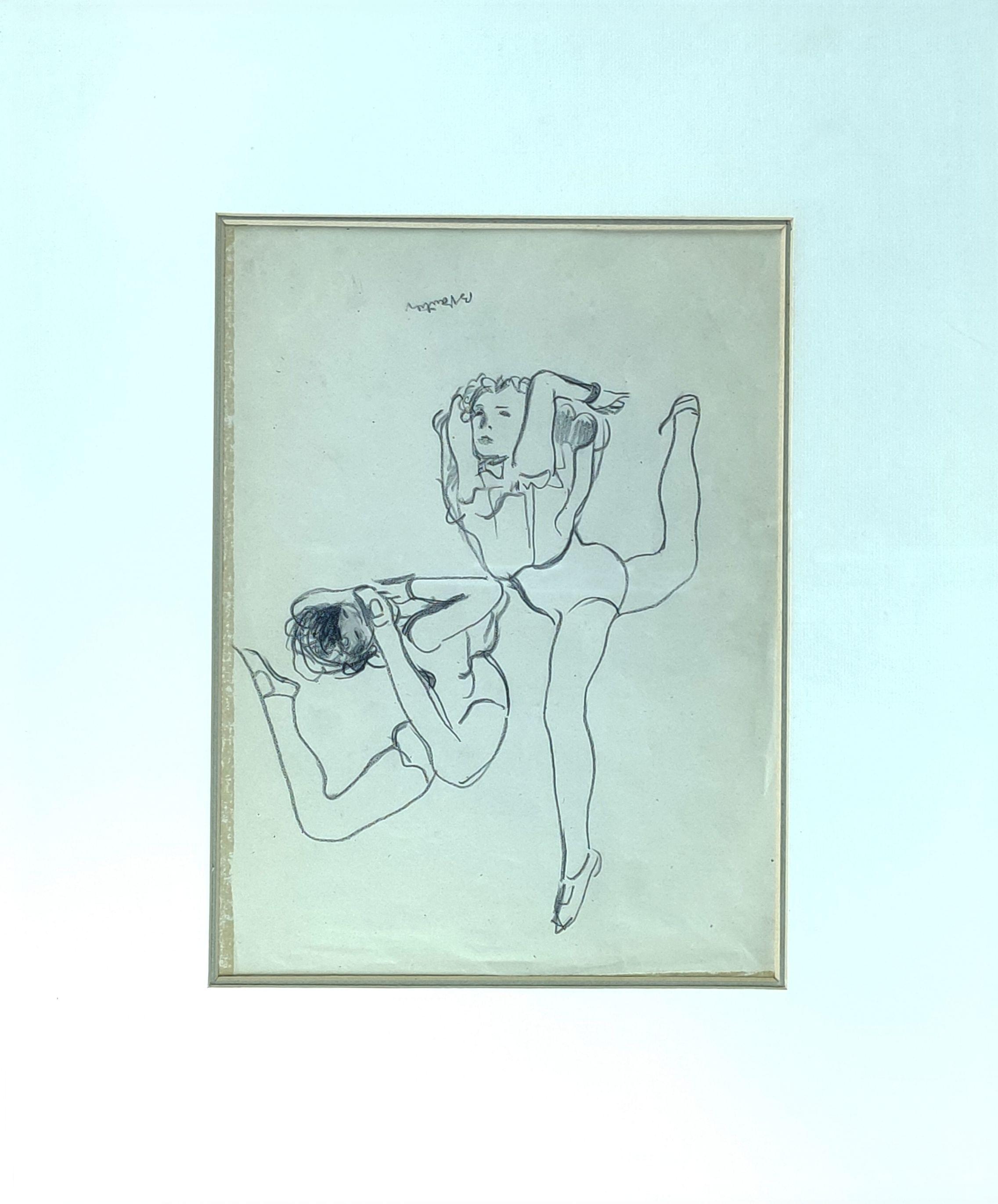Gymnastes, mine de plomb sur papier signée, 25x20 cm