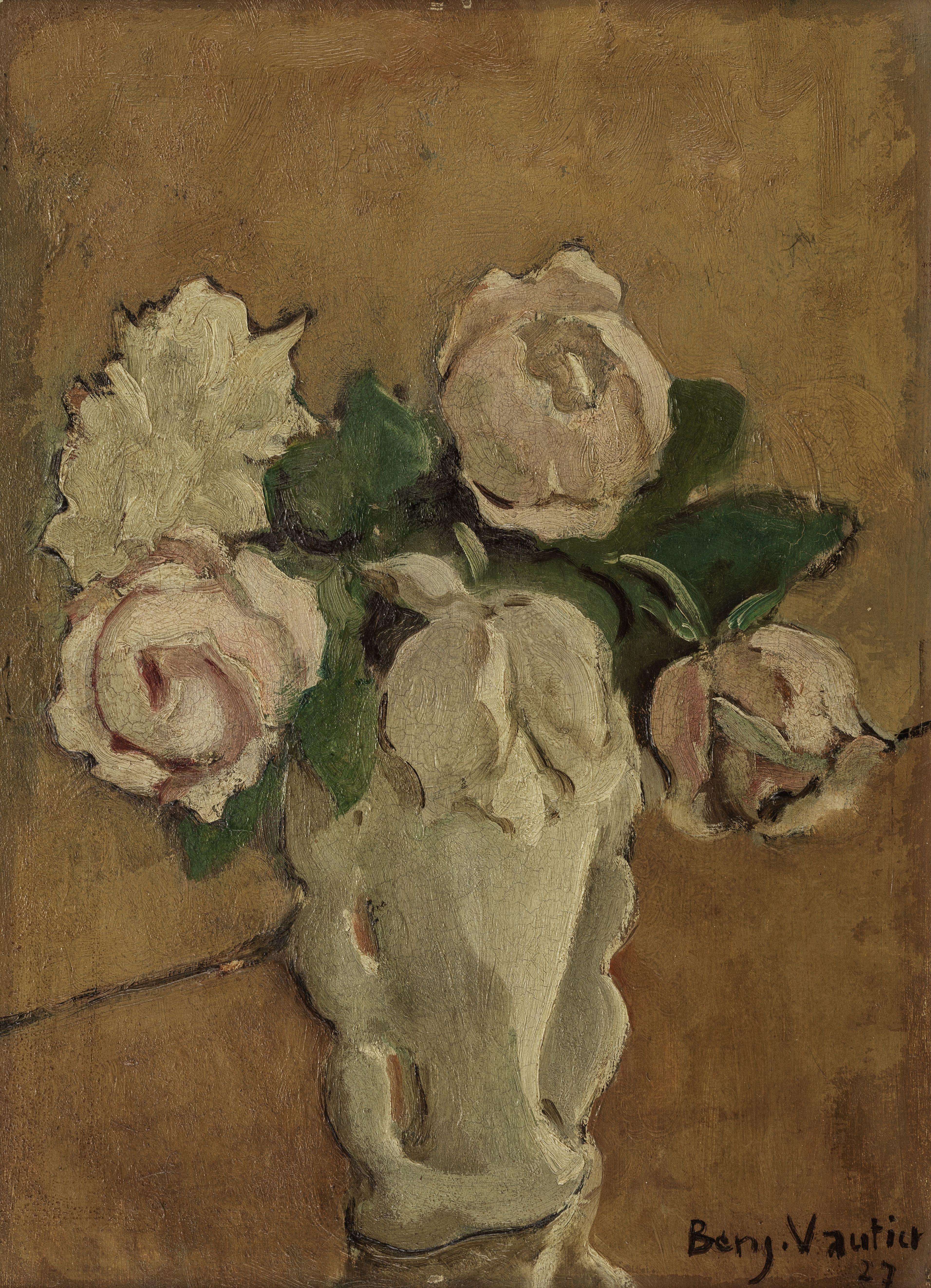 Femme assise, un sein dénudé, huile sur toile, signée, 63x52 cm