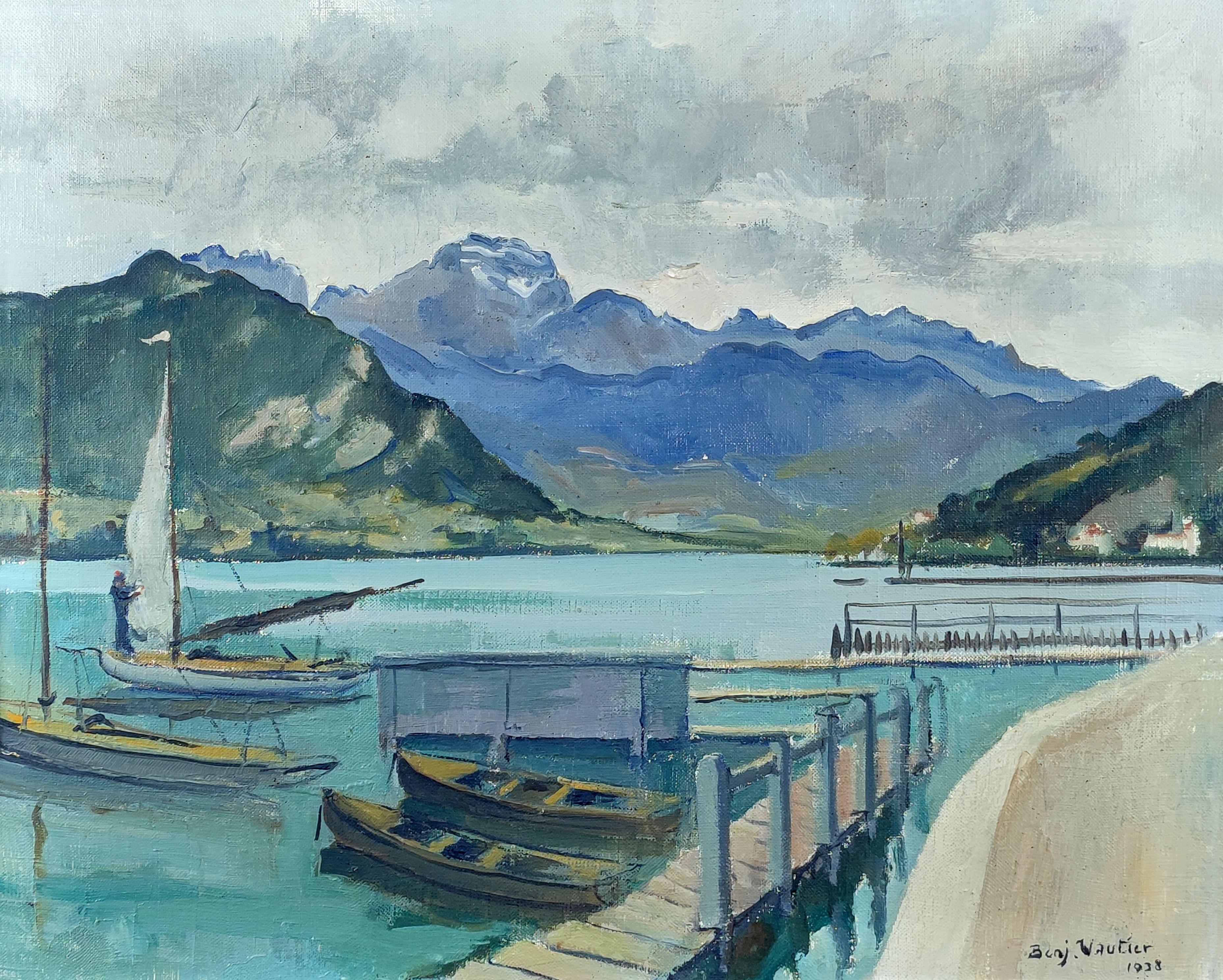 Lac d'Annecy, huile sur toile, signée et datée 1938, 45,5x55 cm.
