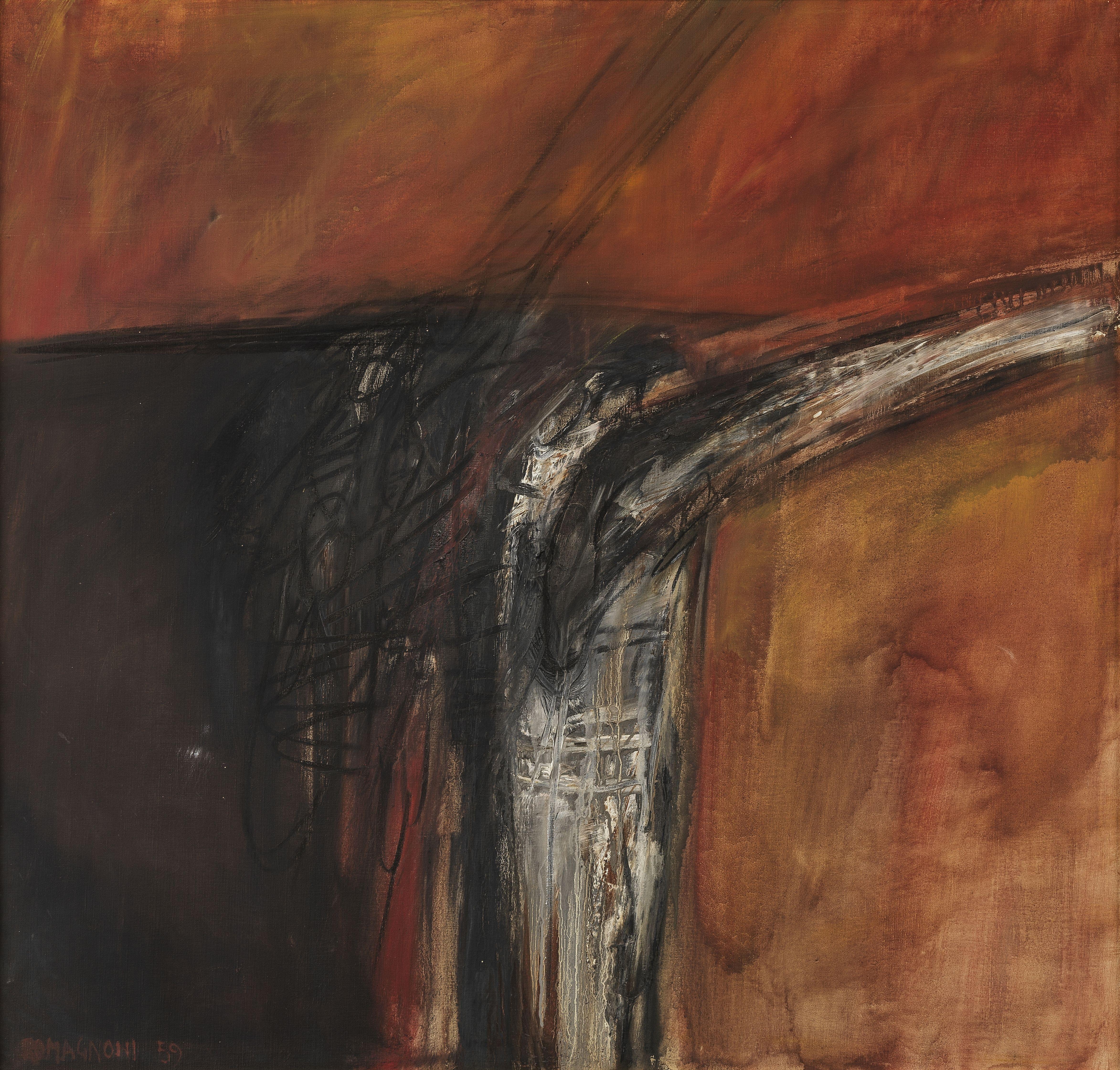 Uomo in cruce, huile sur toile, signée et datée 1959, 100x100 cm
