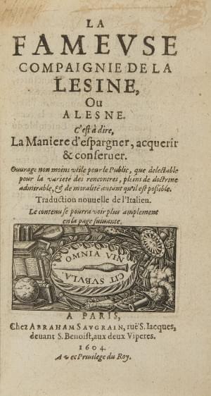 233. La Fameuse Compagnie de la Lesine. Paris, Saugrain, 1604;