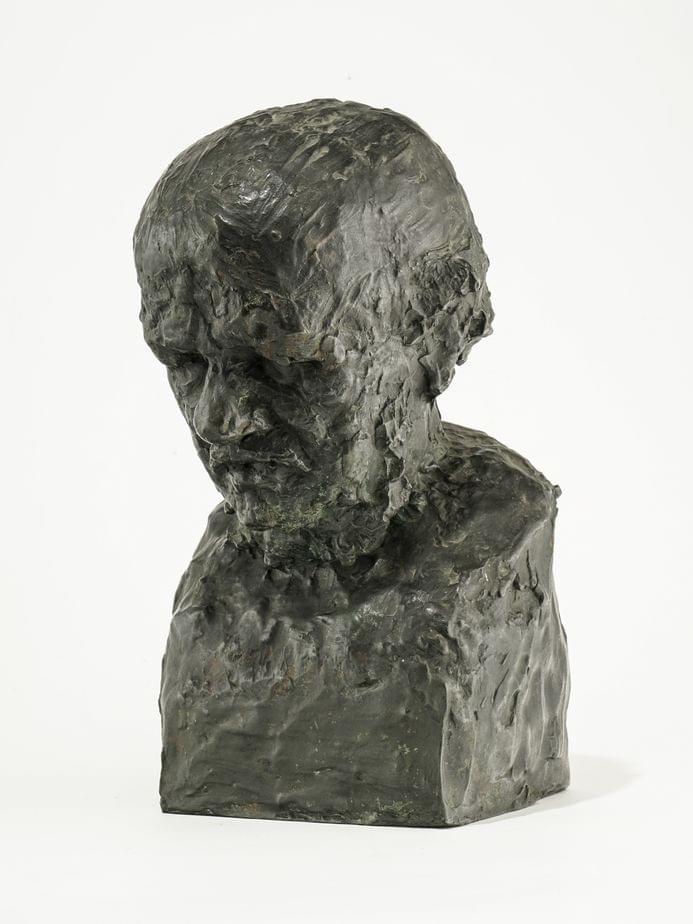 Portrait d'homme barbu accoudé, bronze à patine brune, H 42 cm....
