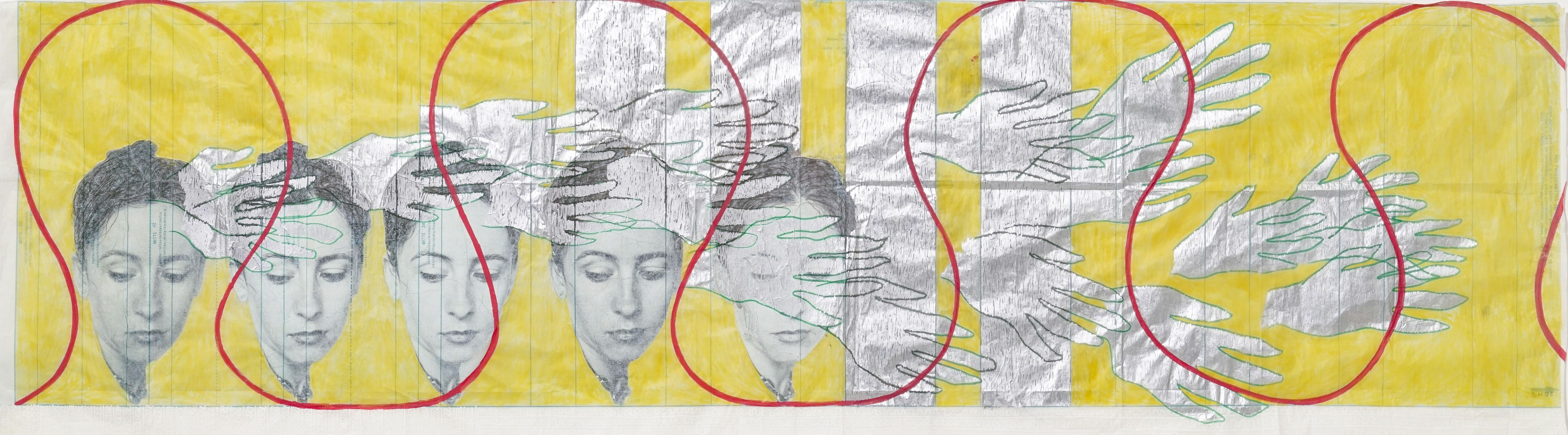 technique mixte sur papier, monogrammée et datée 95, 40 x 139 cm