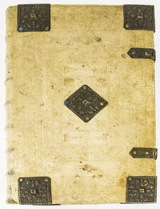 Fort vol. in-folio, veau brun sur ais de bois, à décor estampé,...