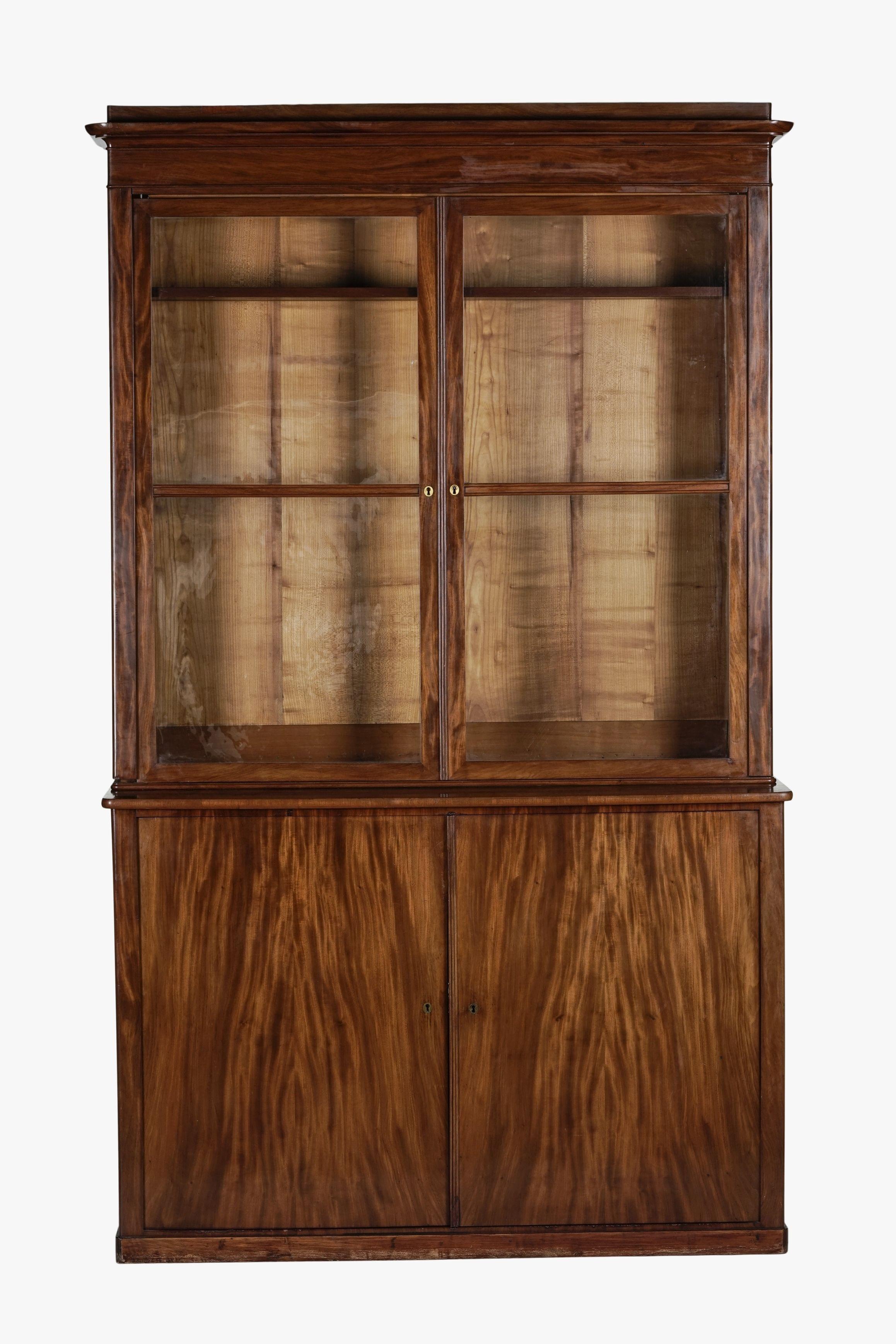 Deux portes vitrées en partie haute et deux vantaux en partie basse, acajou, 234x116x57,5 cm
