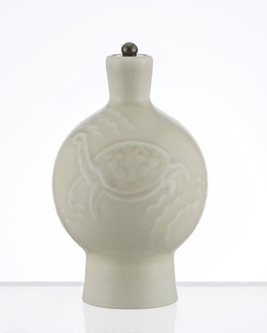 Potiche à panse globulaire couverte, porcelaine émaillée à décor de tortue marine, cachet aux trois tours, et numérotée 1207/383 sous la base ; hauteur : 13,5 cm
