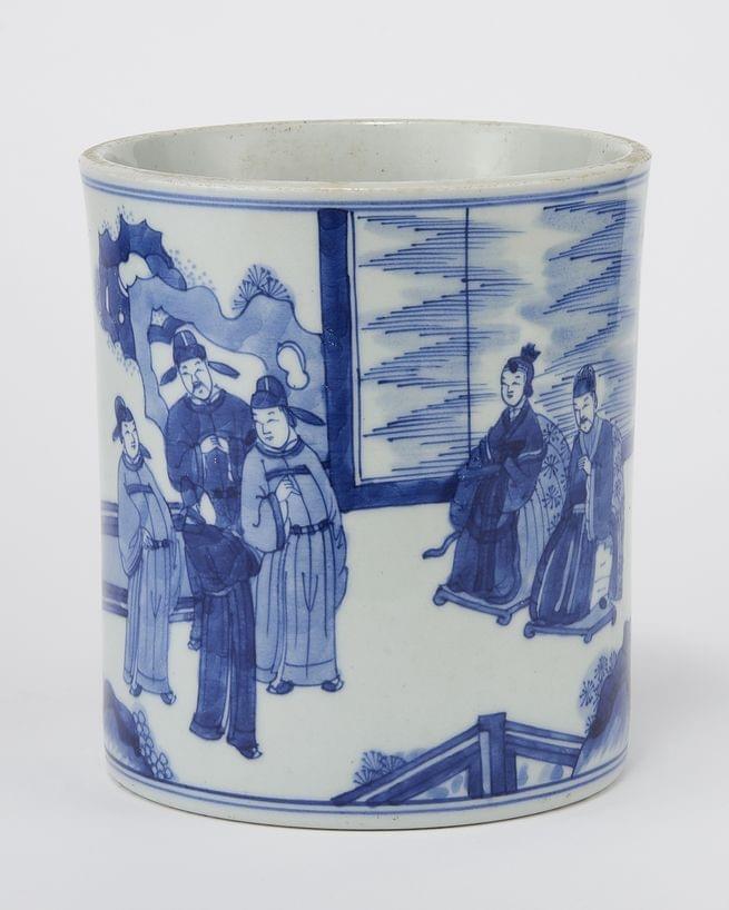 Porcelaine émaillée bleu blanc, à décor de personnages, H 15,5 cm