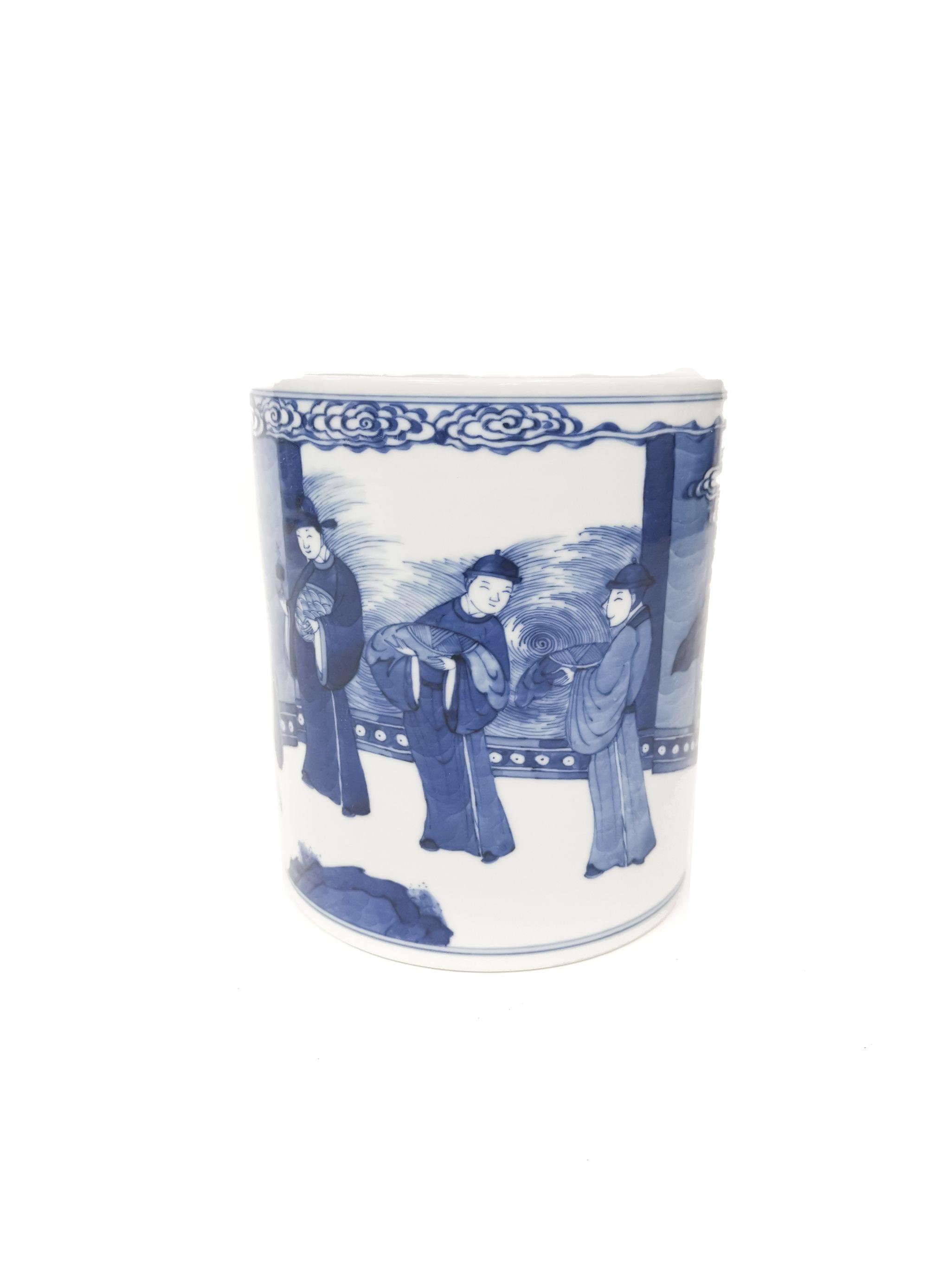 Porcelaine bleu blanc à décor d'une scène de cour dans un intérieur, H 14,5 cm