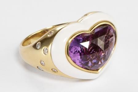 3248. Bague sertie d'une améthyste taille cœur facettée entourée de ca...