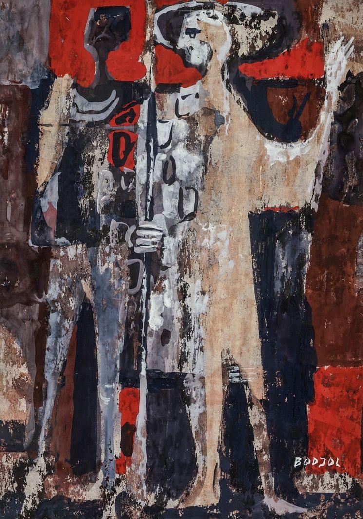 Deux personnages, gouache sur papier, signée, 44,5x31,5 cm