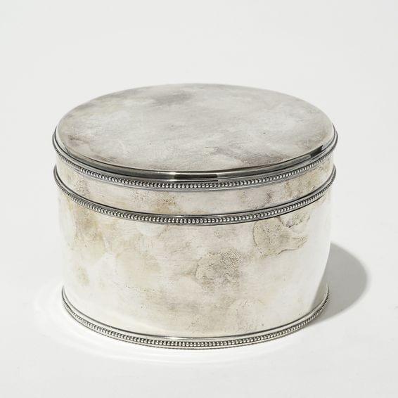 3405. Boîte à biscuits ronde à bordure de perlettes