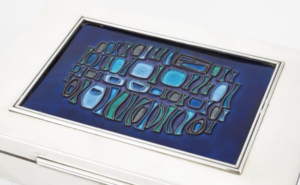 3986. Boîte à cigarettes à décor d'une abstraction géométrique en camaïeux bleus