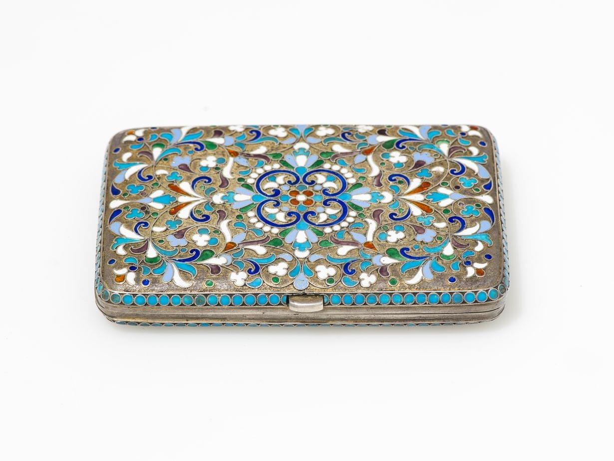 142. Boîte à cigarettes à décor de rinceaux en émaux cloisonnés