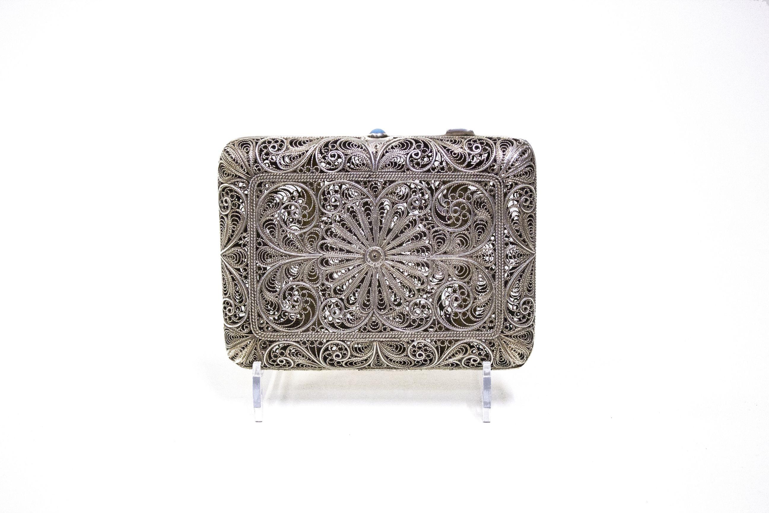 592. Boîte couverte d'un tressage imitant la vannerie, le couvercle s...