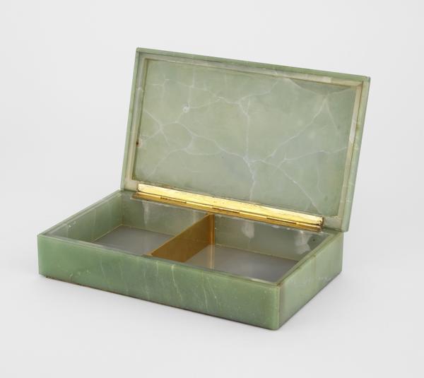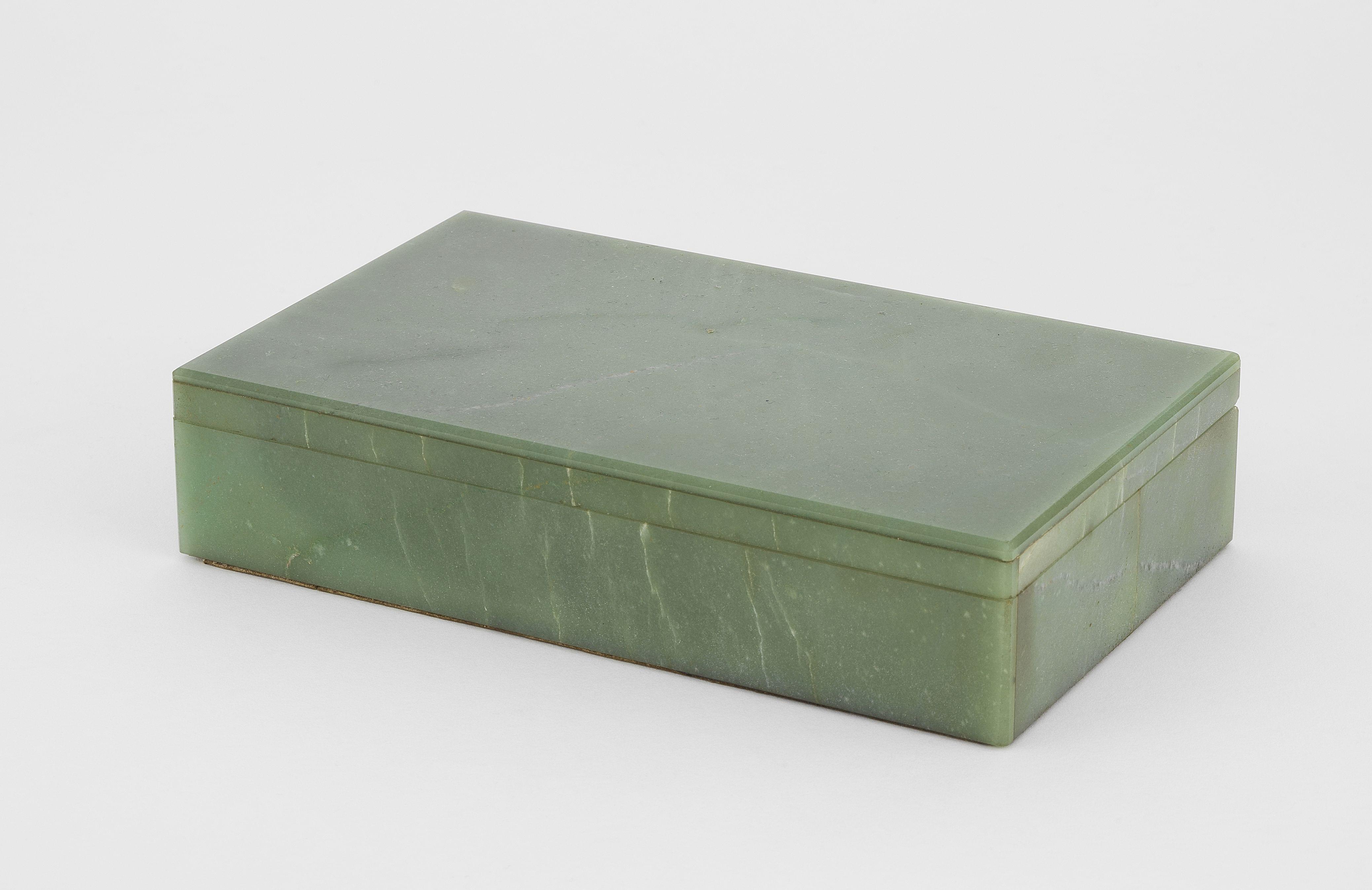 37. Boîte à cigarettes en quartz vert et intérieur d'onyx blanc
