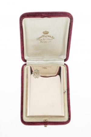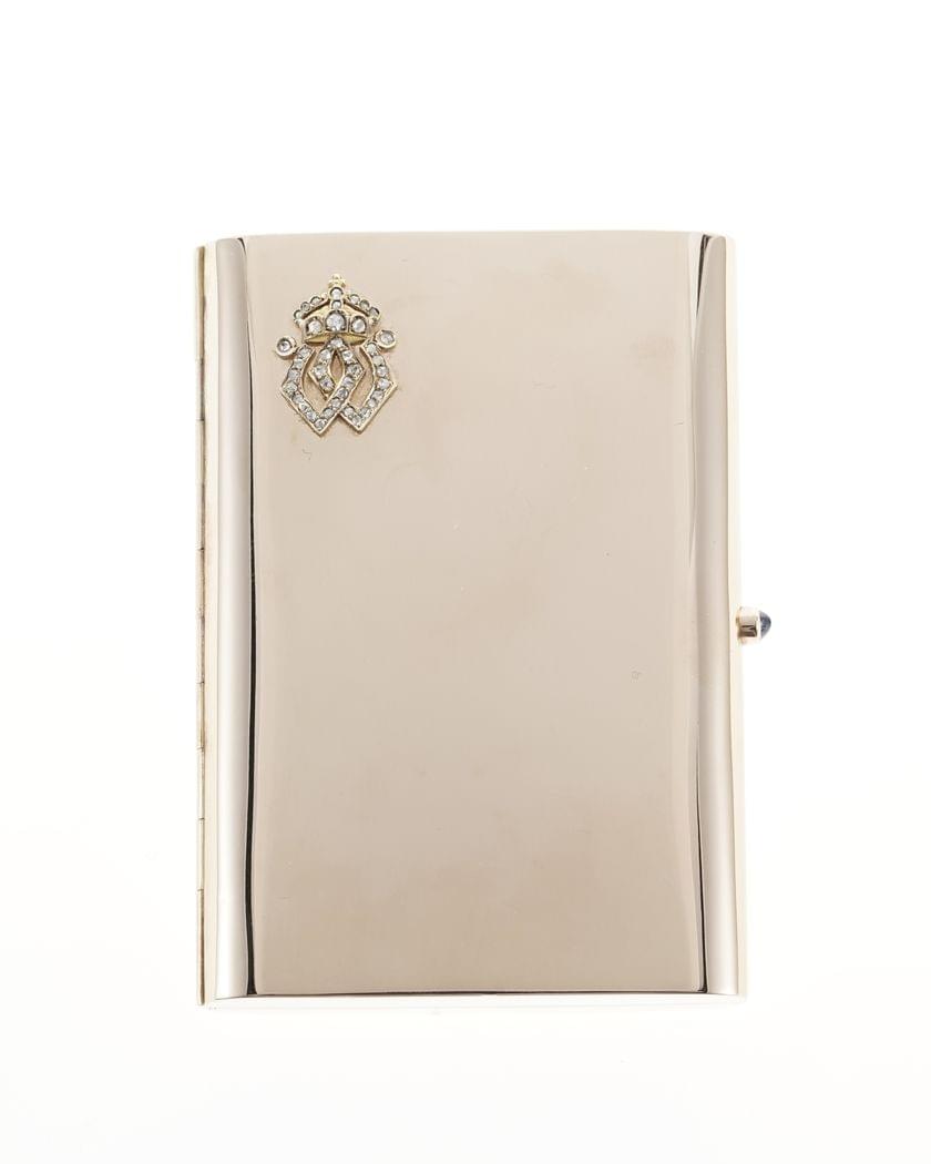 353. Boîte à cigarettes ornée du monogramme de l'Empereur allemand Guillaume II en roses de diamants et agrémenté d'un fermoir serti d'un saphir en cabochon