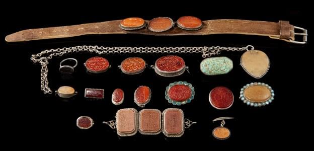 97. 20 sceaux montés sur métal et argent, Iran, époque Qajar (1786–1...