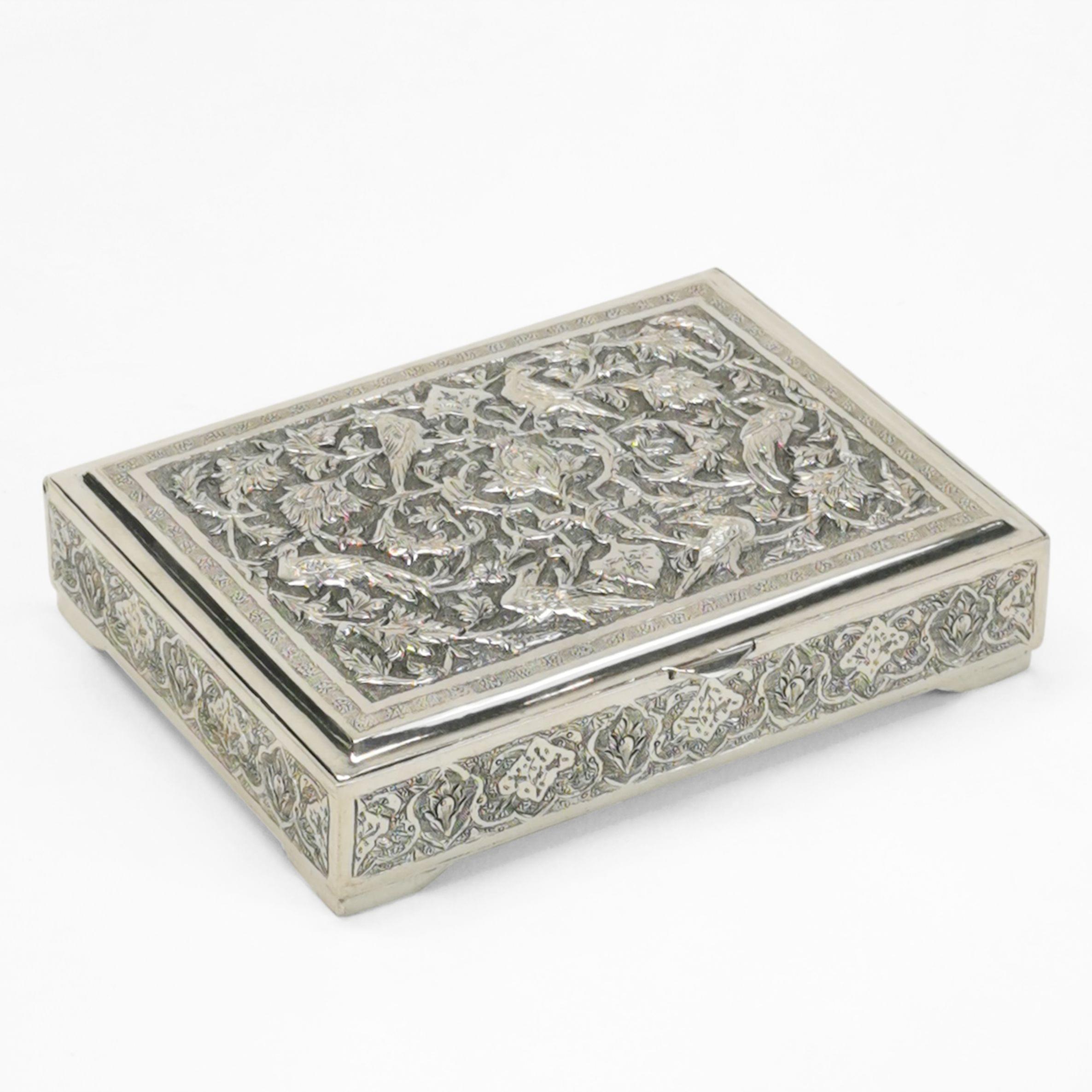 105. Bol à punch sur talon à décor repoussé de rinceaux et oiseaux
