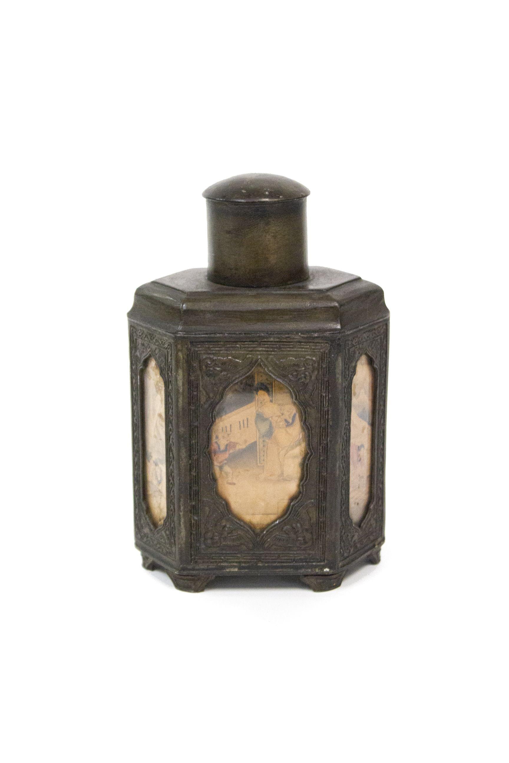 3658. Boîte à thé à décor de scènes érotiques en réserve