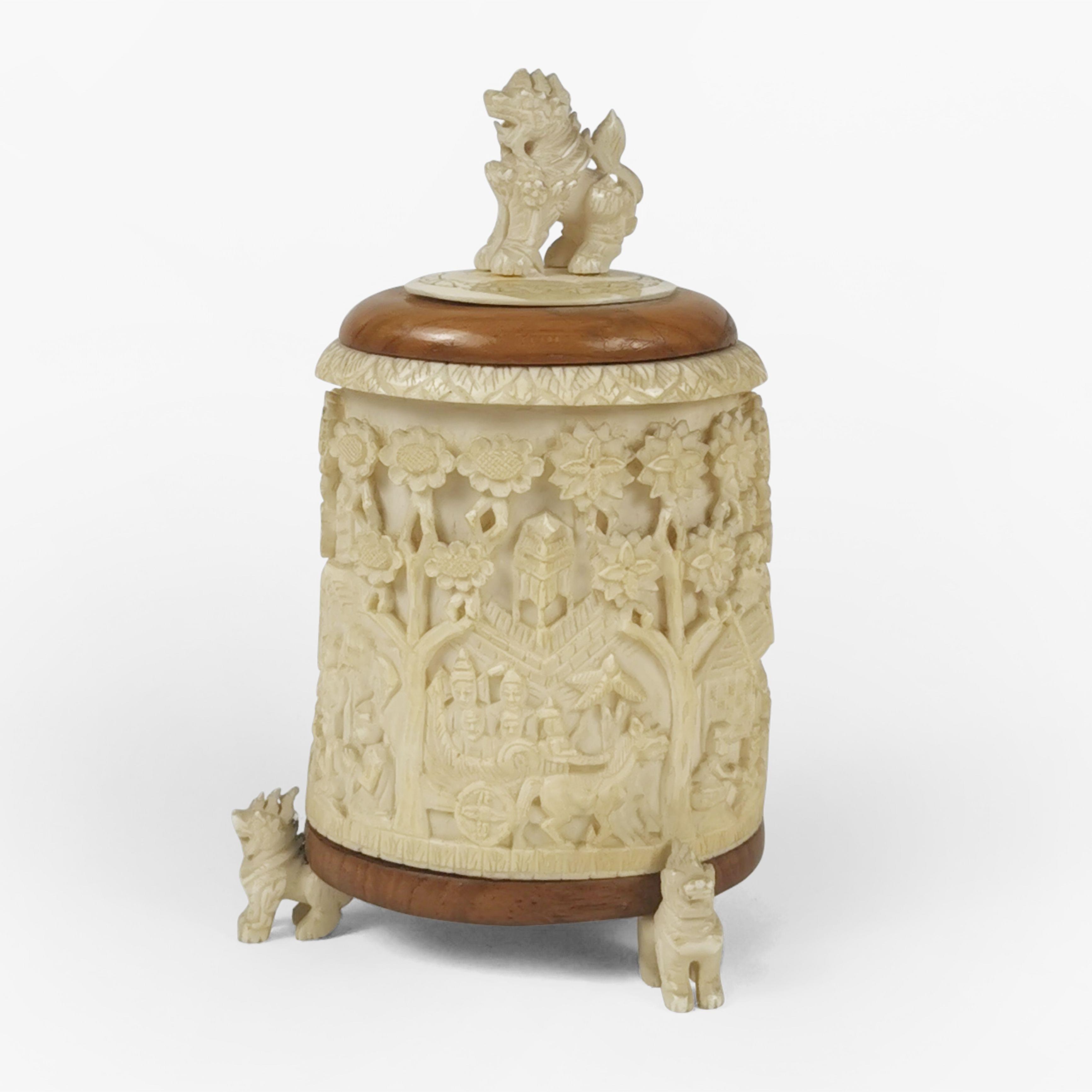 Cuivre et émaux polychromes, couvercle à décor d'un médaillon de...