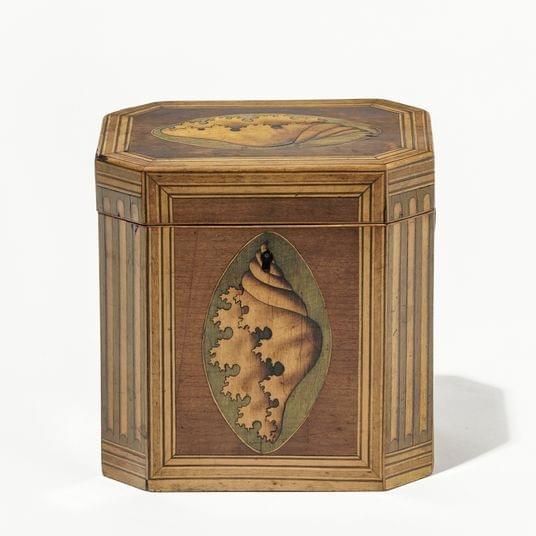 207. Boîte à thé d'époque George III à décor marqueté de coquilles