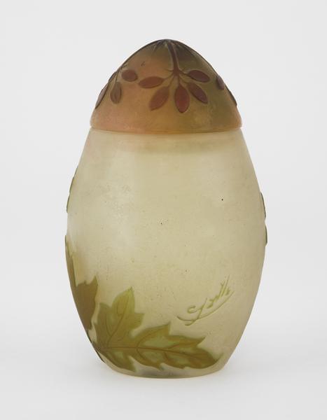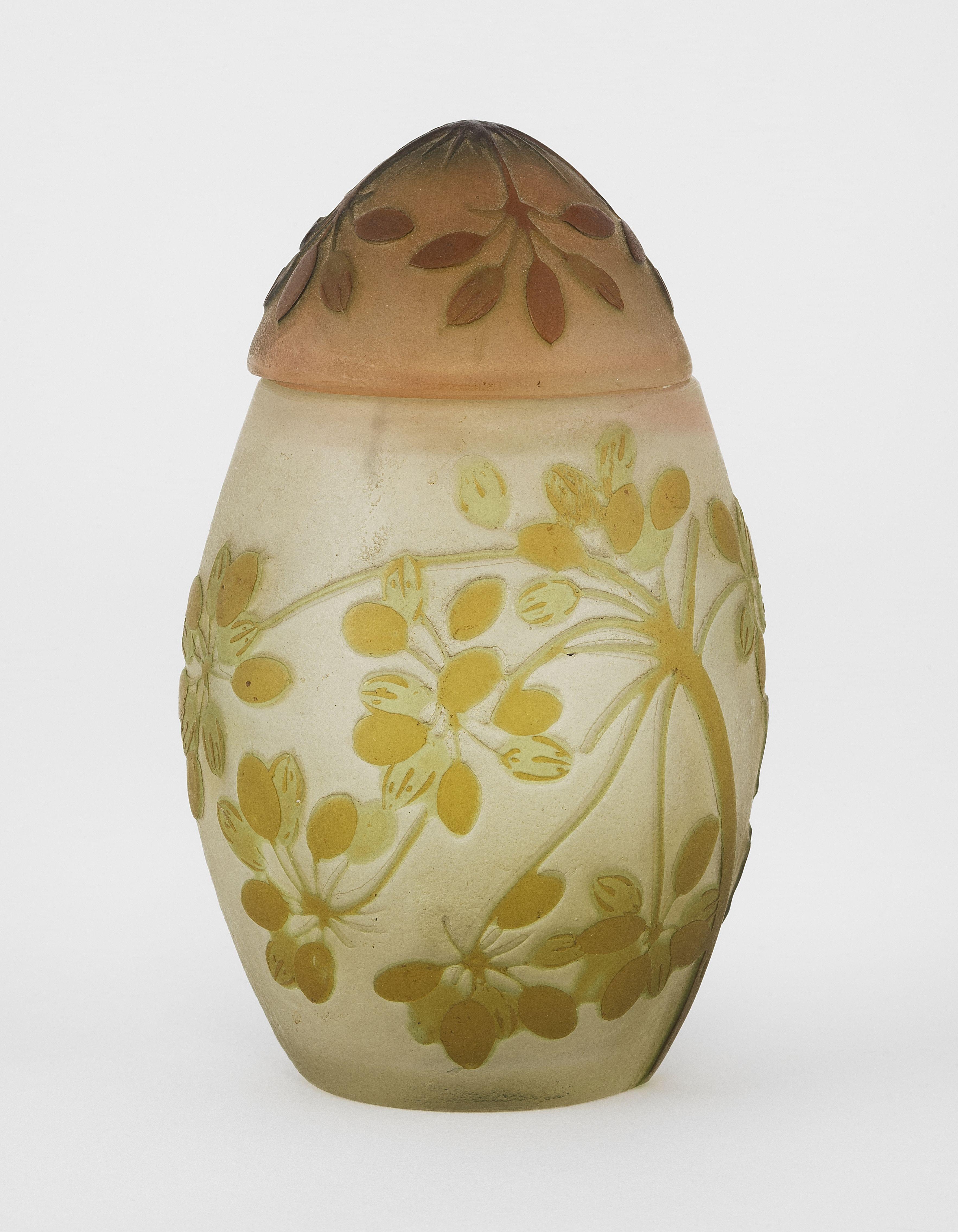 Verre multicouche dégagé à l'acide à décor d'ombellifères vertes sur fond rose, H 12 cm