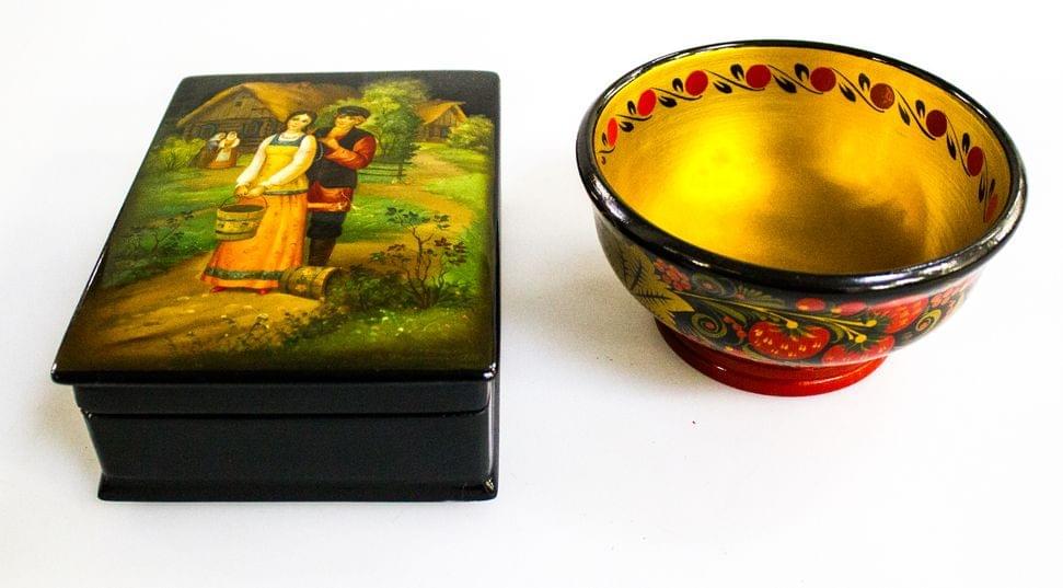 188. Collection comprenant: 1 flacon, 1 coupe tripode, 1 boite quadri...