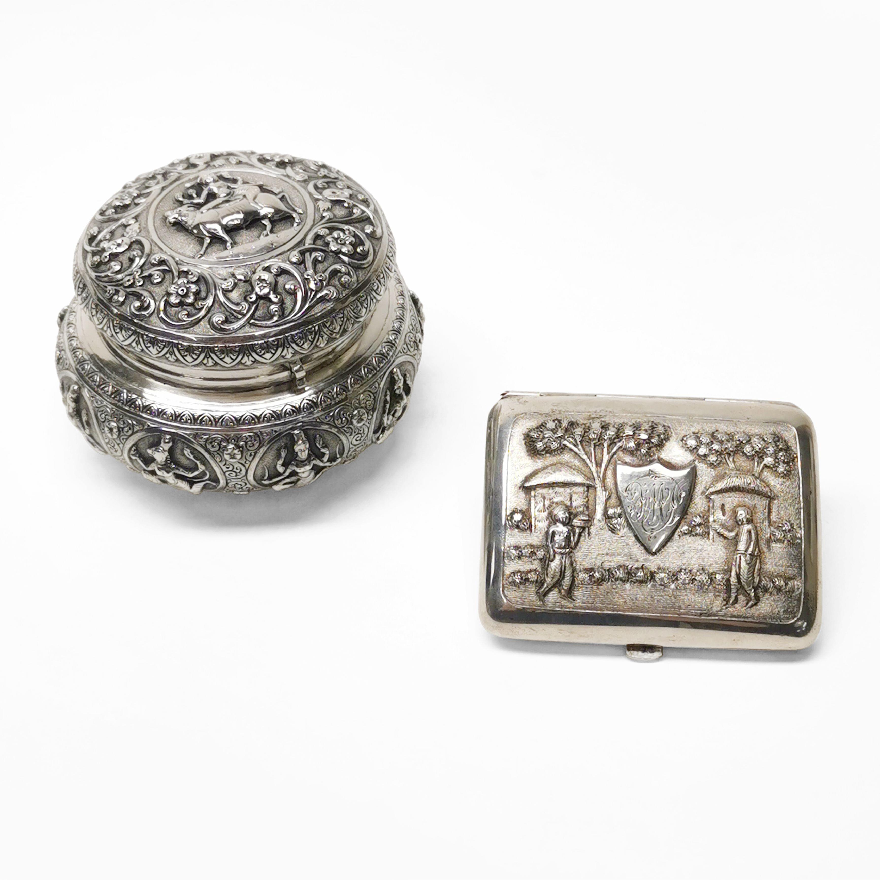 Cuivre et émaux polychromes, couvercle à décor d'un médaillon de...