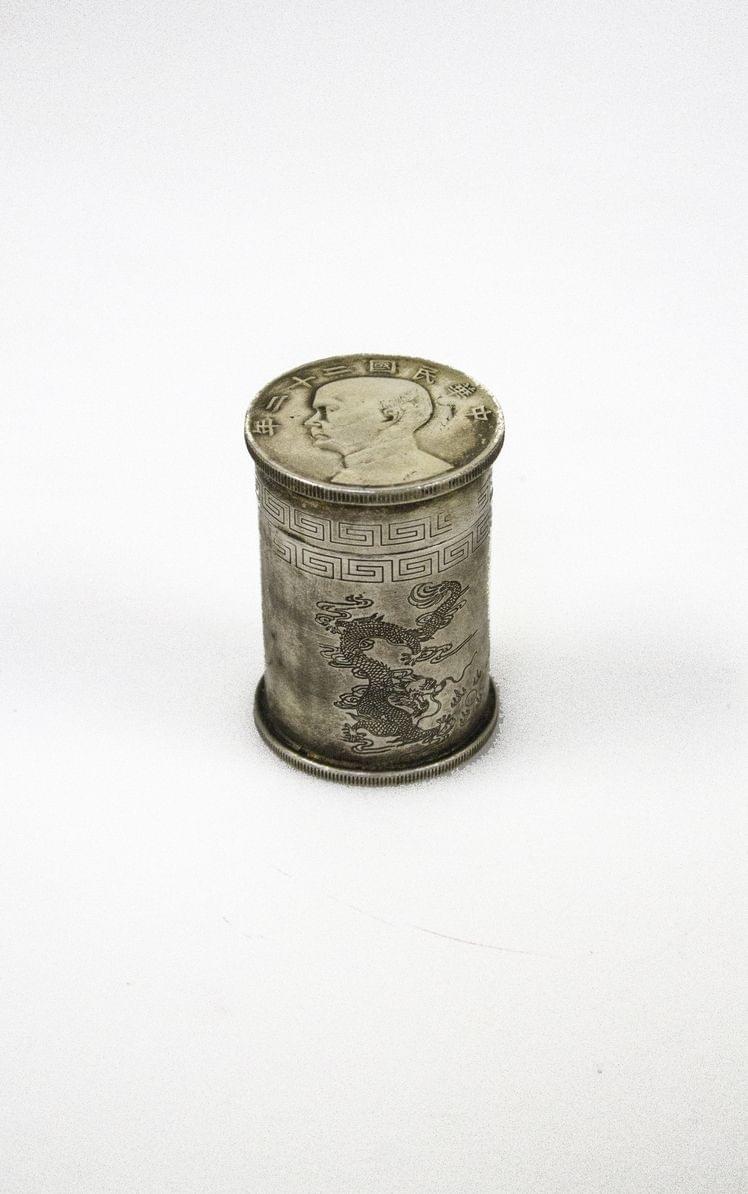 3378. Boîte formée de deux pièces de monnaie, Chine