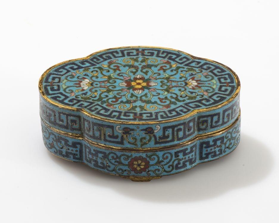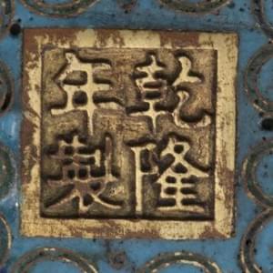 Bronze à décor émaillé cloisonné sur fond turquoise, Chine, dynastie Qing (1644-1912), 4x11,5x9 cm