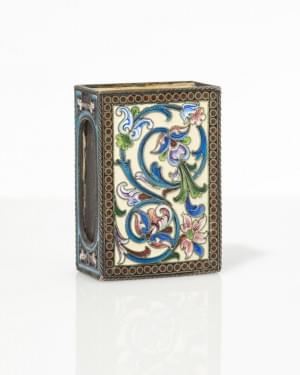 136. Boîte à allumettes à décor d'un lys au naturel et rinceaux en ém...
