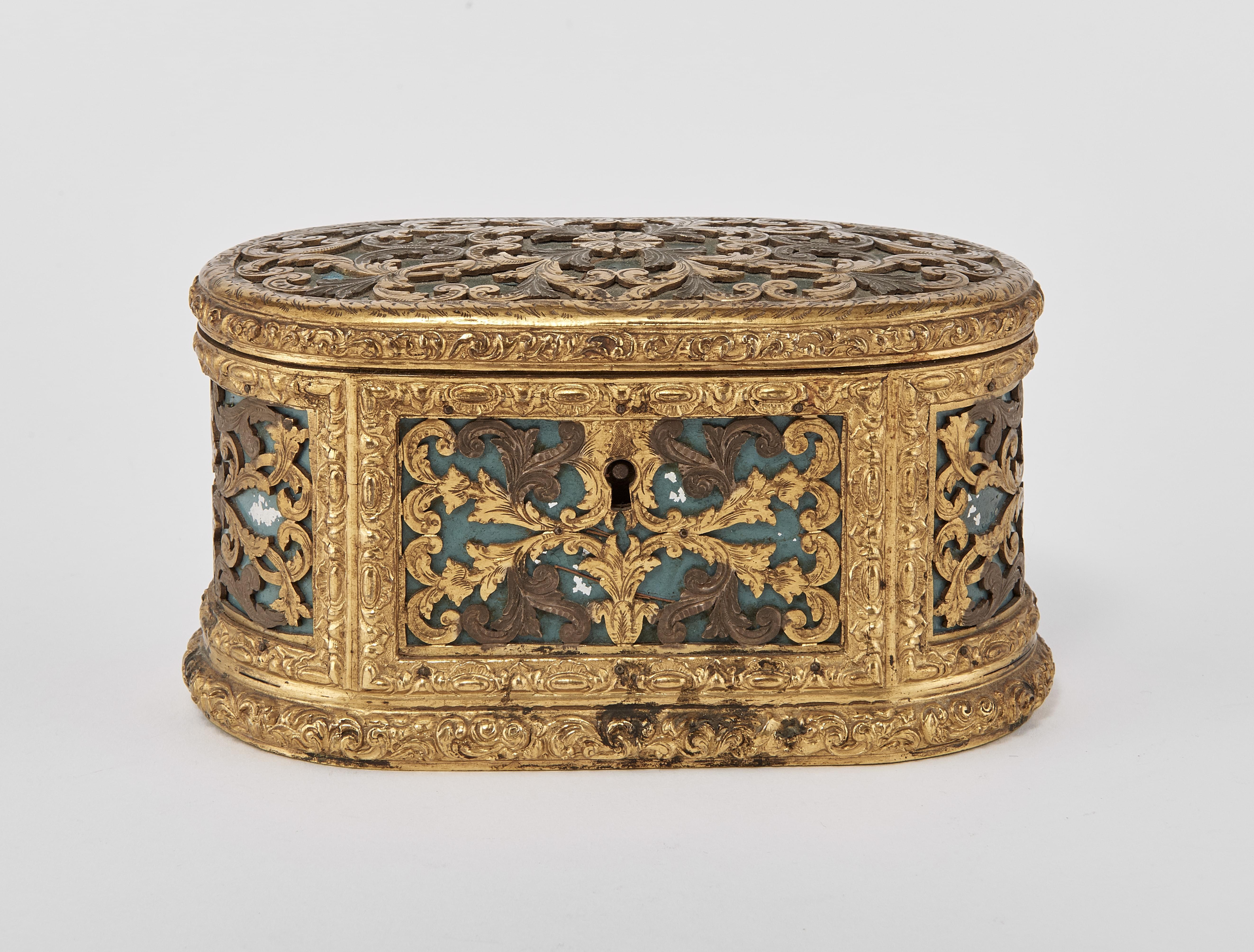 Acier et acier doré et ajouré de rinceaux, 8x15x8 cm
