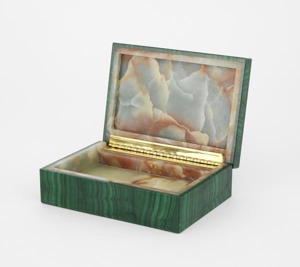 Placage de malachite et onyx, 3,5x11,5x8 cm. Provenance: Collection Prince et Princesse de Savoie. Provenienza: Collezione Principe e Principessa di Savoia