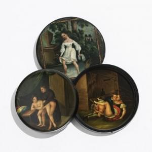 Allemagne, Stockmann, papier bouilli laqué noir et peint, D 9 cm