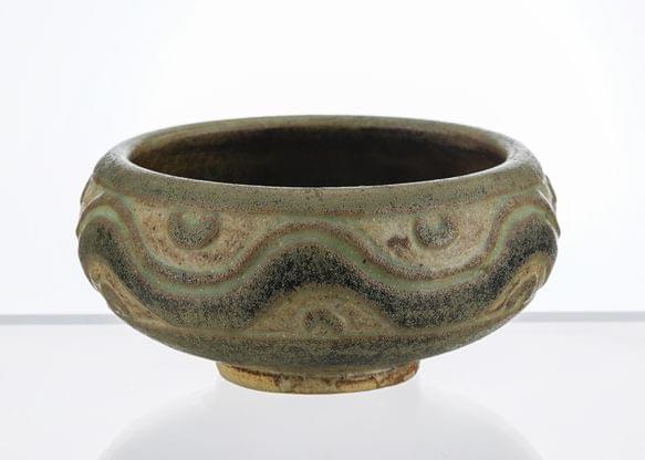 Céramique émaillée vert et brun, probablement Lucie Rie-Gomperz (1902-1995), signée, D 12 cm