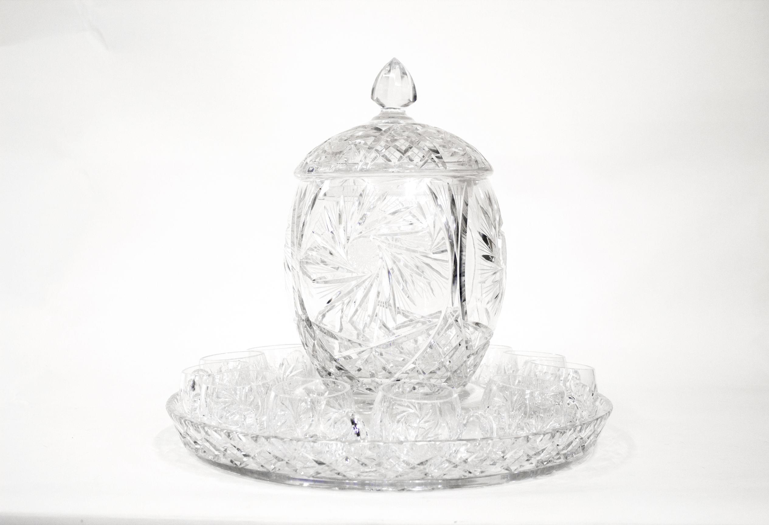 645. Coupe, six gobelets et plateau pour le Kiddush à motif de pampre...