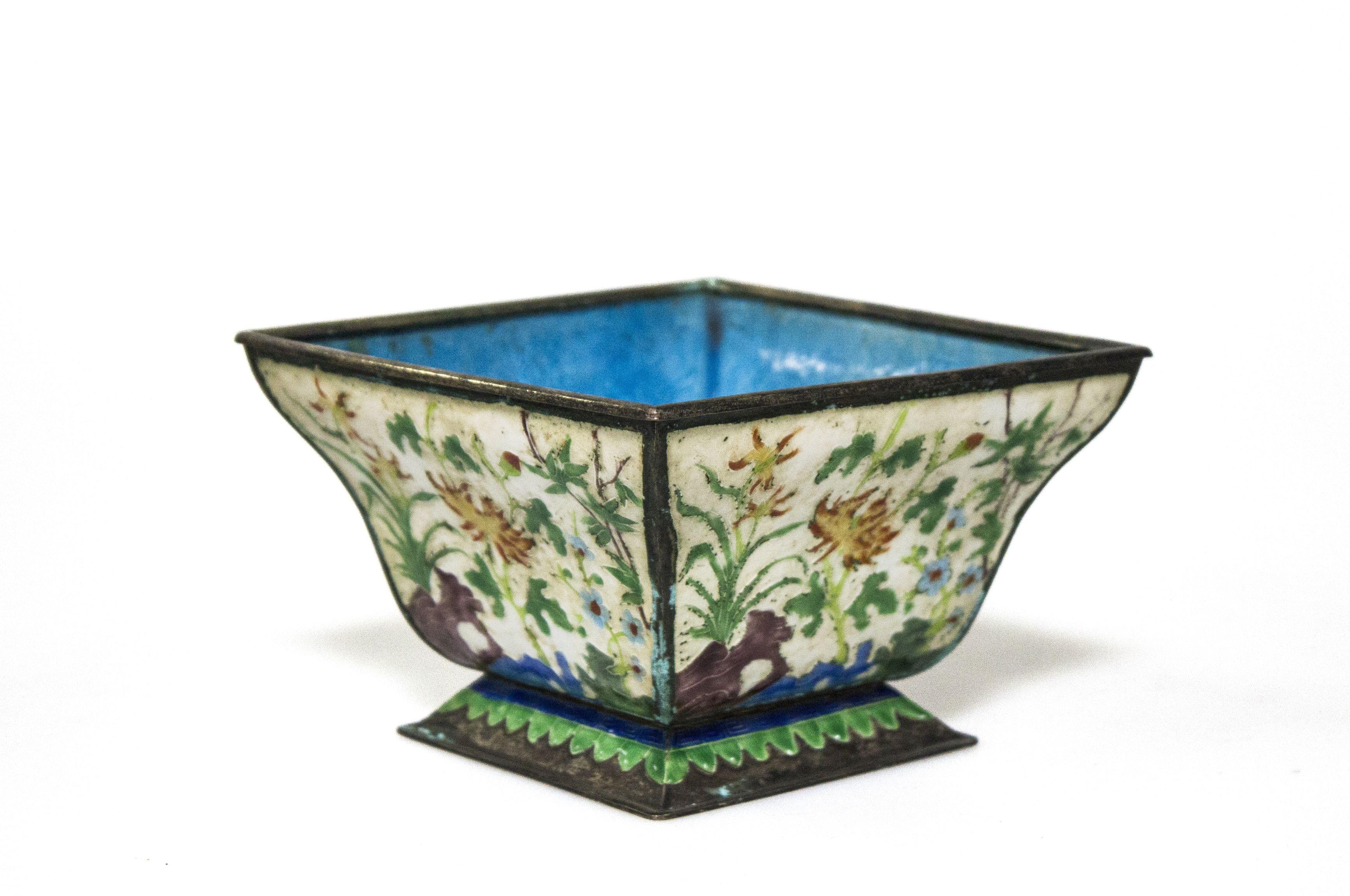 Email à décor de branches et fleurs polychromes, H 9 cm