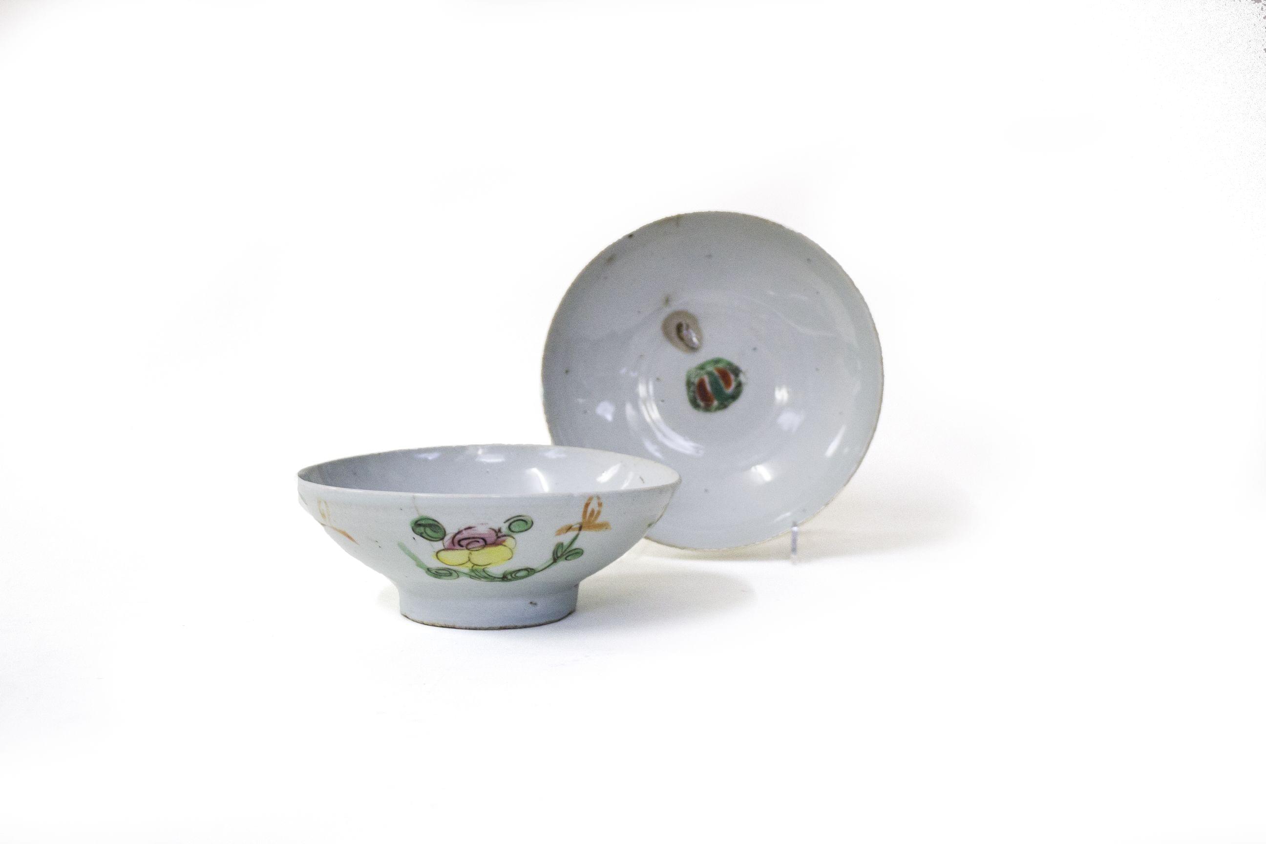 Porcelaine émaillée polychrome à décor de fleurs, D 16 cm